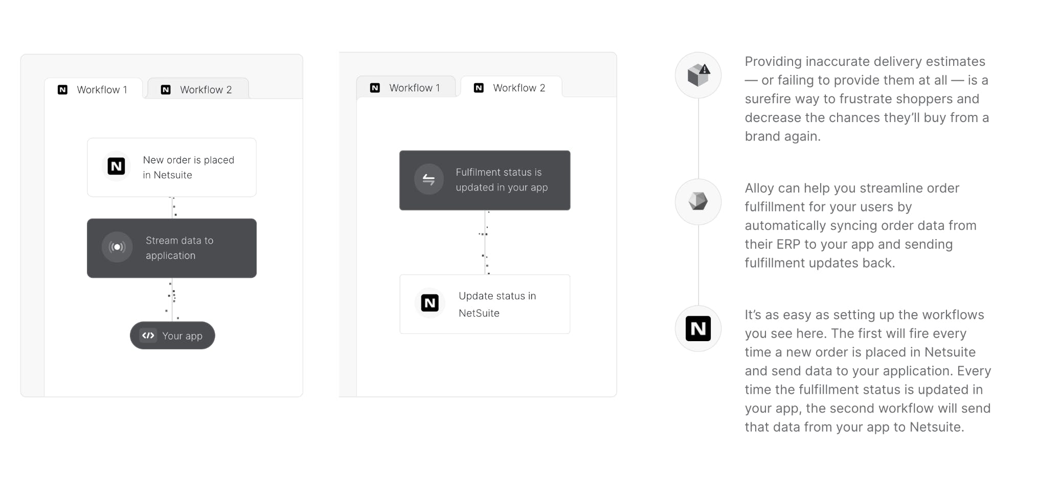 There are a few other features of Unified API to point out. First, Alloy Automation easily allows engineers to deploy webhooks that grab real-time data from Shopify and other platforms. Some platforms do not explicitly allow webhooks, but Alloy Automation uses an hourly polling system that checks for new orders periodically. This ensures that data is accurate and real-time. Furthermore, some platforms, such as Shopify, impose rate limits that prevent too many requests to Shopify’s API. Alloy Automation is able to offer better rate limits: 150 per minute for basic users and up to 1K per minute for enterprise users. This ensures quicker syncing of data, which can result in a better end-user experience.