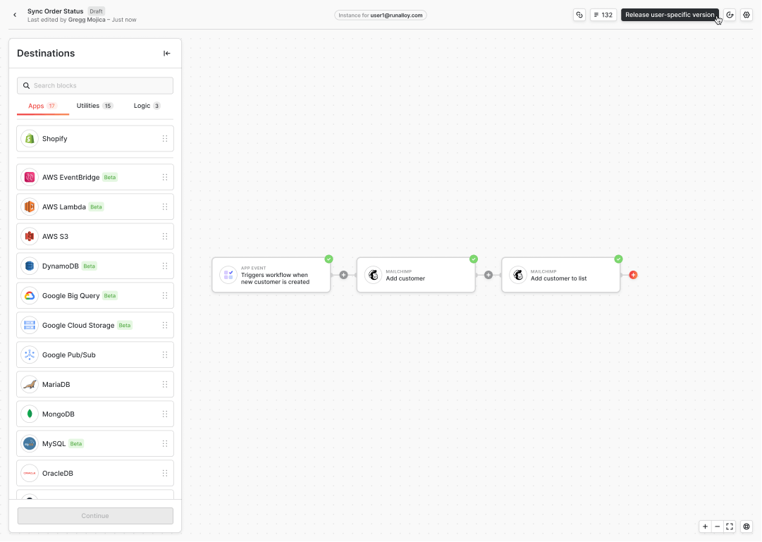 Alloy Automation’s primary customers are independent software vendors (ISVs) that sell software to customers for a variety of applications, including ecommerce, sales and marketing, shipping and logistics, and finance and accounting. Alloy Automation started out focused solely on ecommerce, so much of its current integration support is dedicated to the ecommerce tech stack. However, in June of 2023, Alloy Automation announced it was “open to business for everyone”, adding integrations and support beyond ecommerce.
