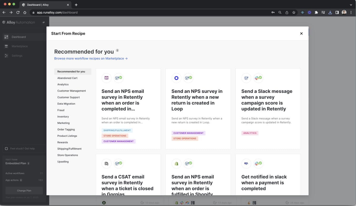 Alloy Automation has also curated a recipe book of hundreds of workflows that are commonly used, which allows for even more efficient integrations.