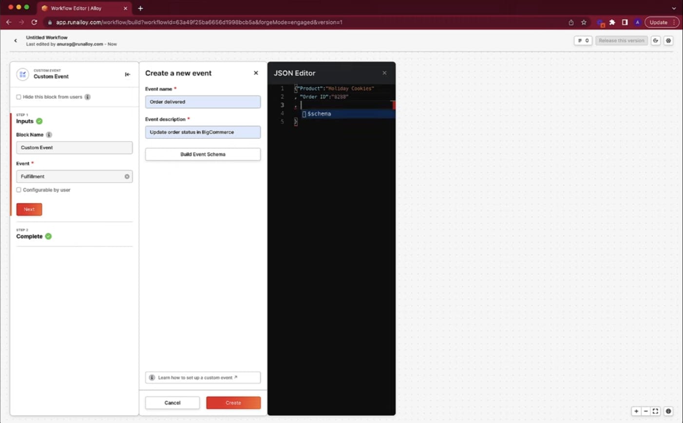 Alloy Embedded also allows for workflows that are triggered from custom events within your app, for instance pushing a status update to BigCommerce.