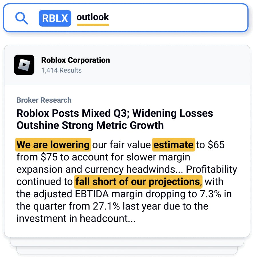 AlphaSense has been unable to substitute incumbent financial data providers like FactSet and Capital IQ. Despite its content and search capabilities, AlphaSense lacks features like live stock quotes, which could be necessary for its customers in financial services and investor relations. As a result, these users must maintain subscriptions to multiple platforms, potentially viewing AlphaSense as a supplementary tool rather than a primary resource. This can put the company at a disadvantage in the event that these customers decide to consolidate their tool and vendor set.