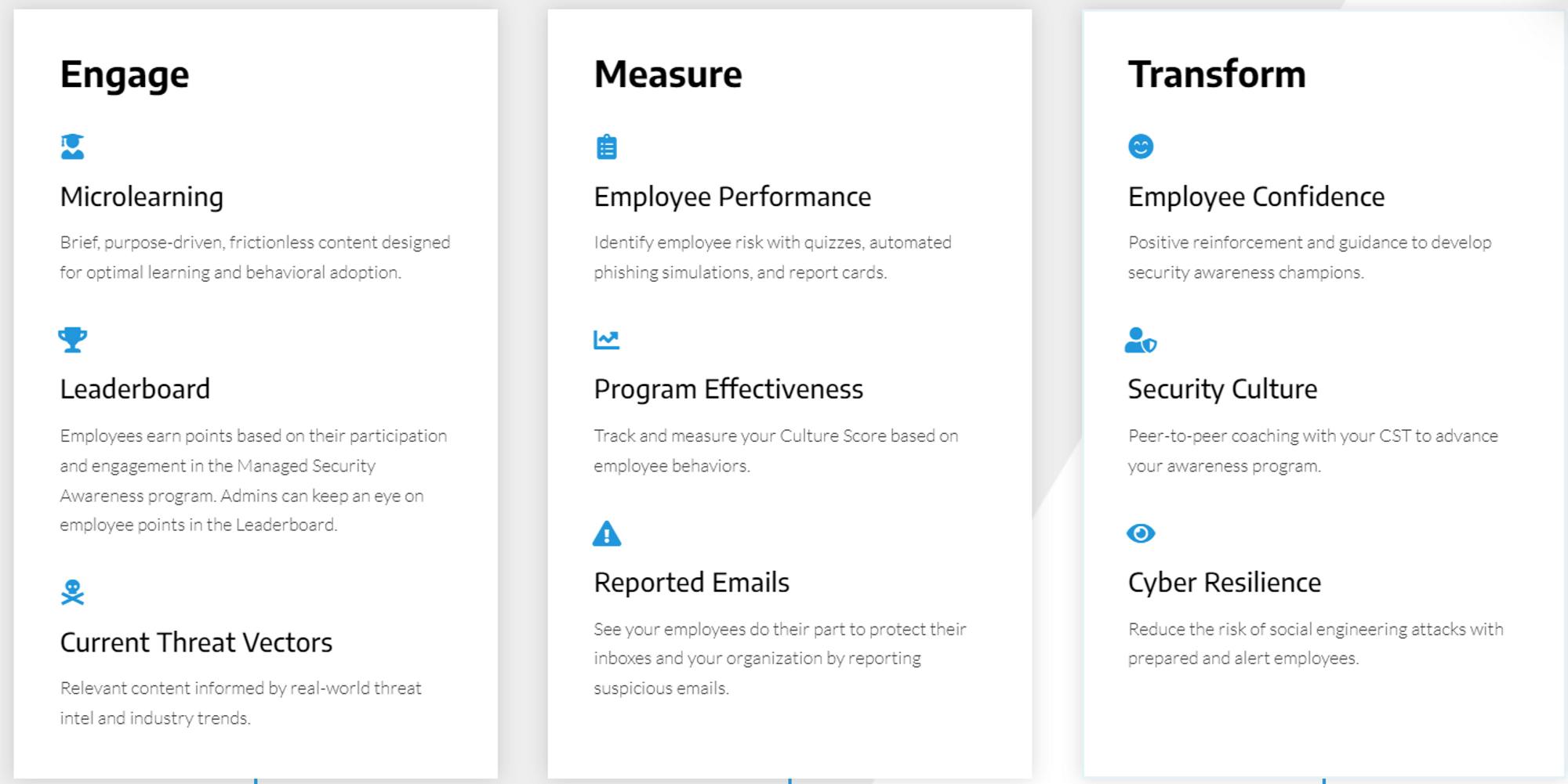 Arctic Wolf’s Managed Security Awareness solution is designed to improve enterprise employee recognition of social engineering tactics such as phishing emails. The solution provides learning sessions, quiz sessions, phishing simulations, and employee progress reports to educate employees and identify at-risk employees. Additionally, Arctic Wolf enables the integration of security awareness training with fifteen additional compliance courses, including Title IX, FERPA, anti-discrimination, and sexual harassment prevention. Arctic Wolf began offering security awareness in 2021 after its acquisition of Habitu8.