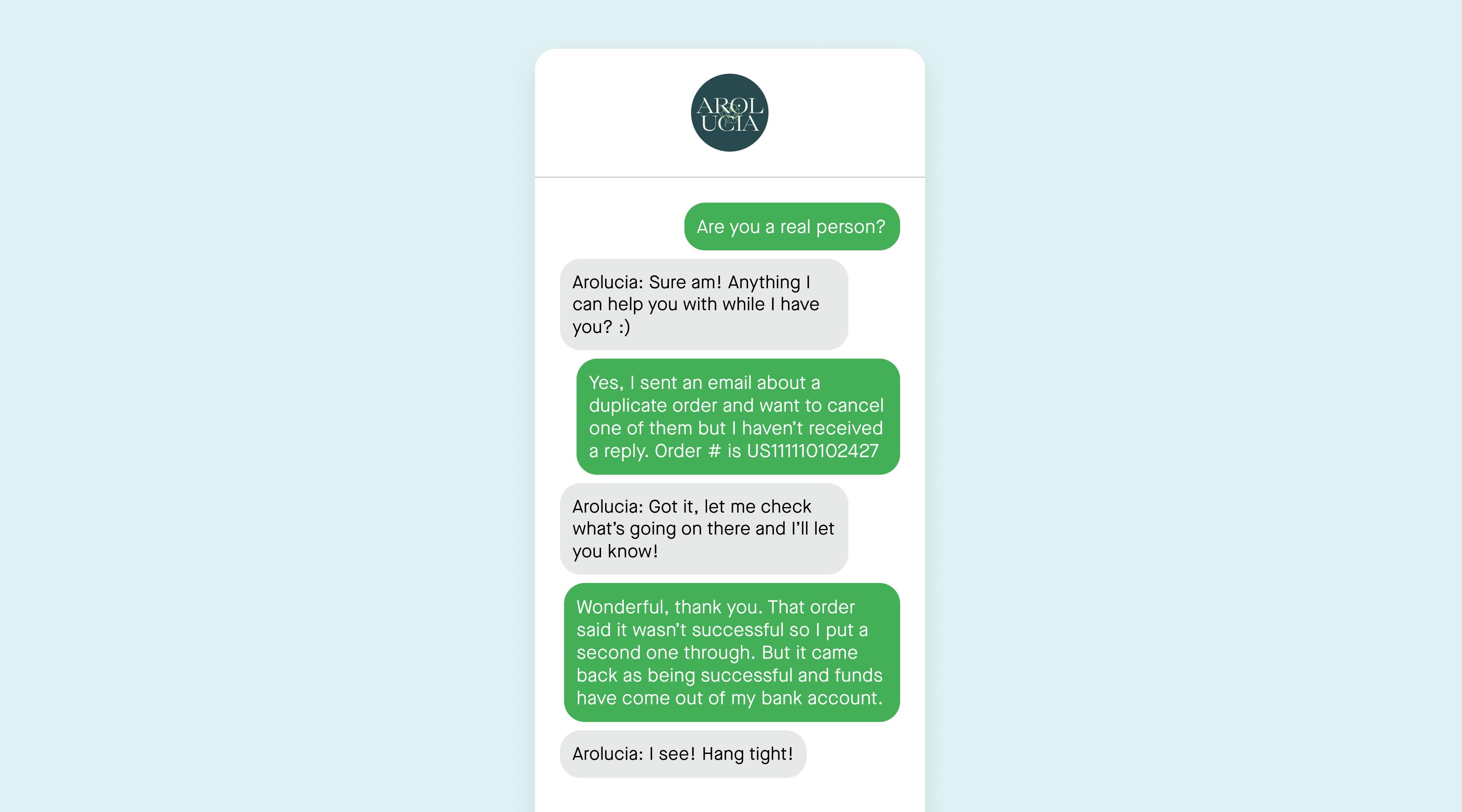 After a user signs up, they can receive a pre-written ‘welcome journey,’ a series of messages where a business can introduce itself, present its offering, and send its contact card.