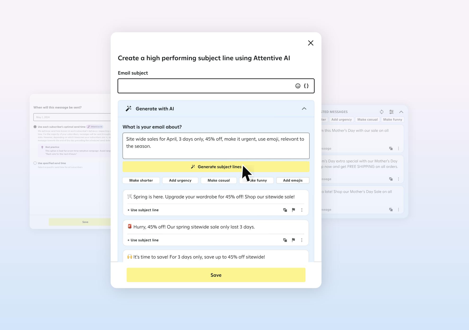 Although Attentive AI was introduced in 2023, it has quickly become a critical lever of the company’s success. The early results of Attentive AI are promising: customers have experienced an increase of 180% in online revenue and 160% in conversions. Furthermore, armed with AI, marketing teams will no longer need to operate in the minutia of a customer’s journey.