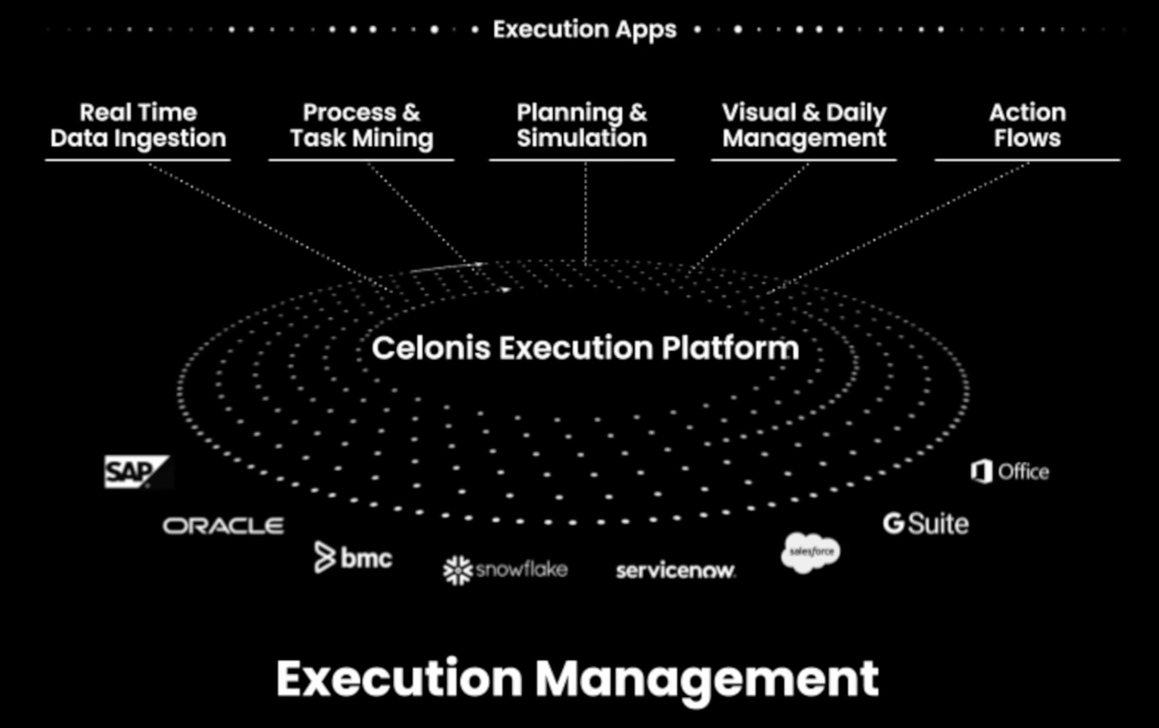 Celonis’s core product offering is its process intelligence platform which uses process mining software and AI to create a digital copy, or “twin”, of end-to-end business processes. Businesses often suffer from inefficiencies in time or cost without understanding how best to eliminate those inefficiencies because of complex business processes. Celonis’s interactive platform visualizes business processes to help parse the root causes of business problems.
