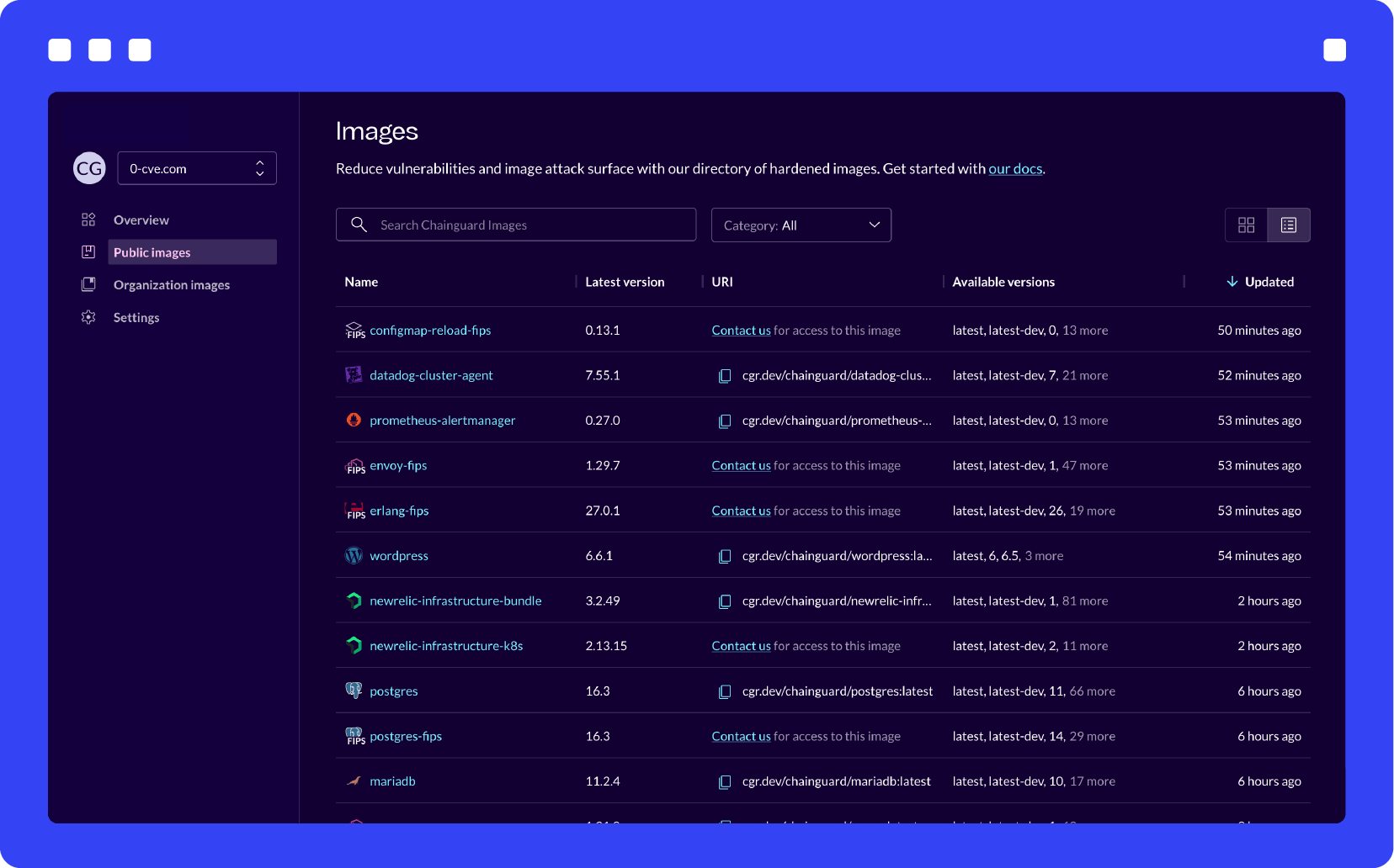 Developer Images are publicly accessible and can be pulled from Chainguard’s Registry. These images are paired with the latest version of packages and comprise of limited base language images, databases, and utilities, such as git, jdk, python, and node. Chainguard reduced Developer Image offerings in November 2024, but the company still maintains these Images based on the latest version of packages. The reduction represents a shift for the company to focusing on producing more comprehensive Production Images for enterprise customers.
