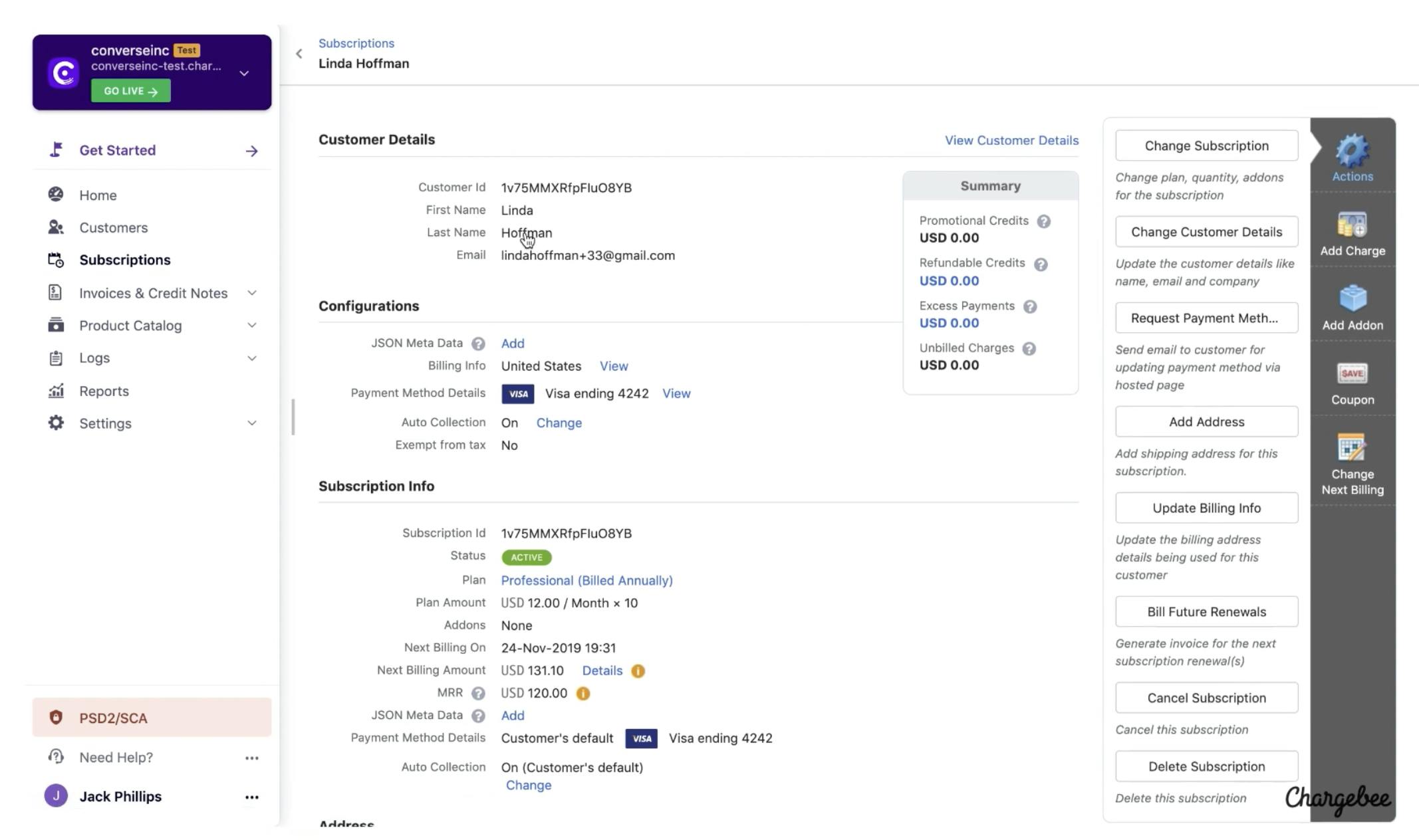 Chargeback Management: Pull up dispute information and use the Chargeback workflows to make changes to subscriptions, and the status of invoices and issue credit notes with low manual effort.