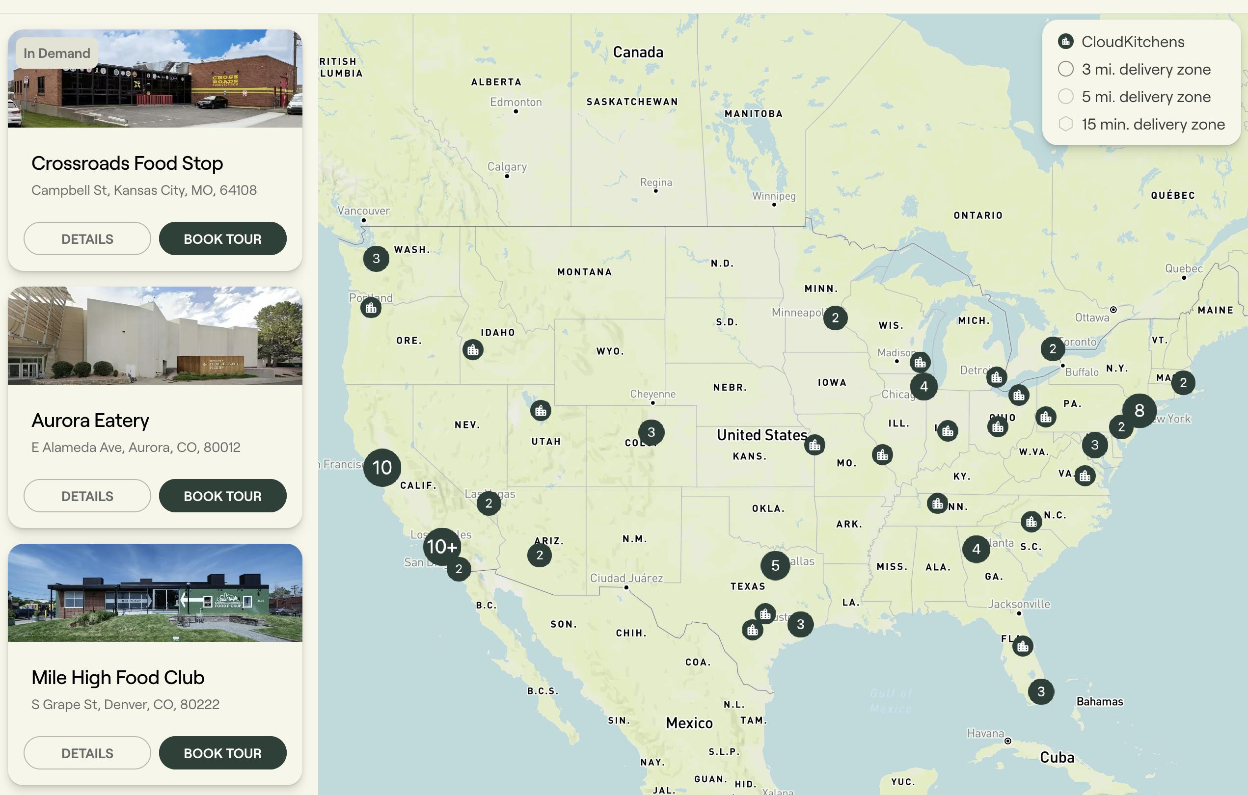 CloudKitchens operates behind the scenes, powering the infrastructure that enables faster, fresher, and more reliable food delivery. While consumers may never see a CloudKitchens facility, its impact is felt in every order - by reducing delivery times, improving food consistency, and ensuring restaurants can operate efficiently at scale. Many of CloudKitchens’ end users are students and young professionals, as locations are strategically positioned next to college campuses and office centers. Many of the company’s property listings provide details on surrounding demographics, such as total food and drink spending in a 1-5 mile radius.