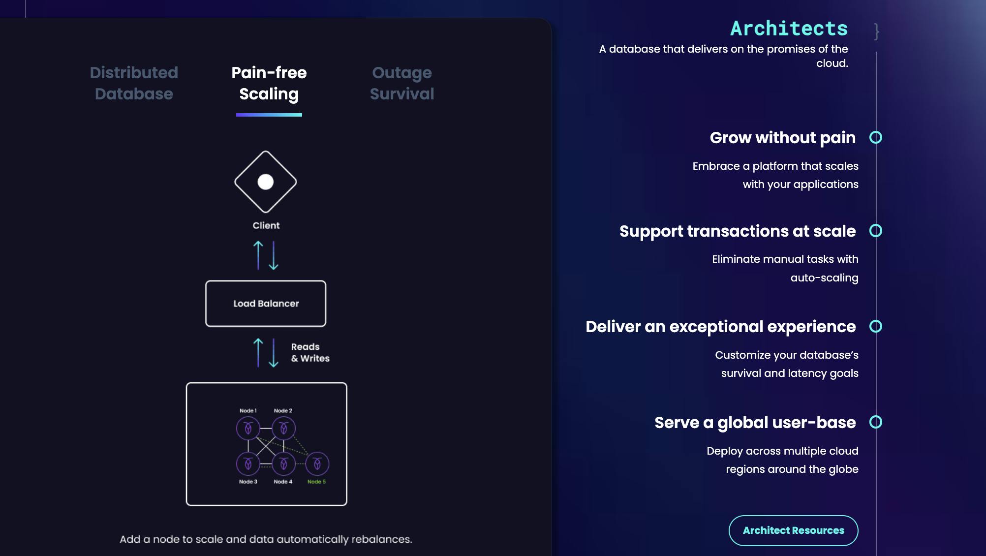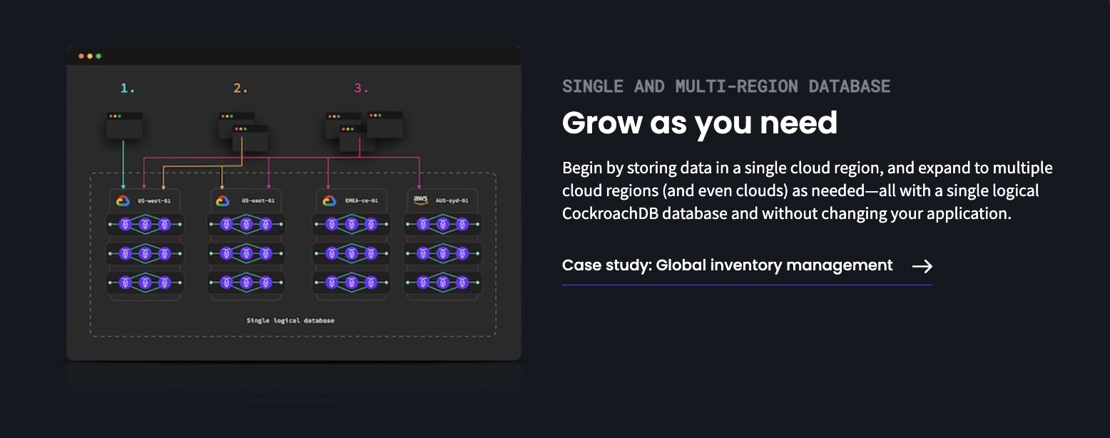 Traditional SQL databases also offer ACID transactions but typically do not match CockroachDB’s geo-partitioning. Geo-partitioning is an essential feature because of global companies’ widespread user bases. It ensures prompt responses to user requests regardless of where they originate. It also eases compliance with data storage regulations.