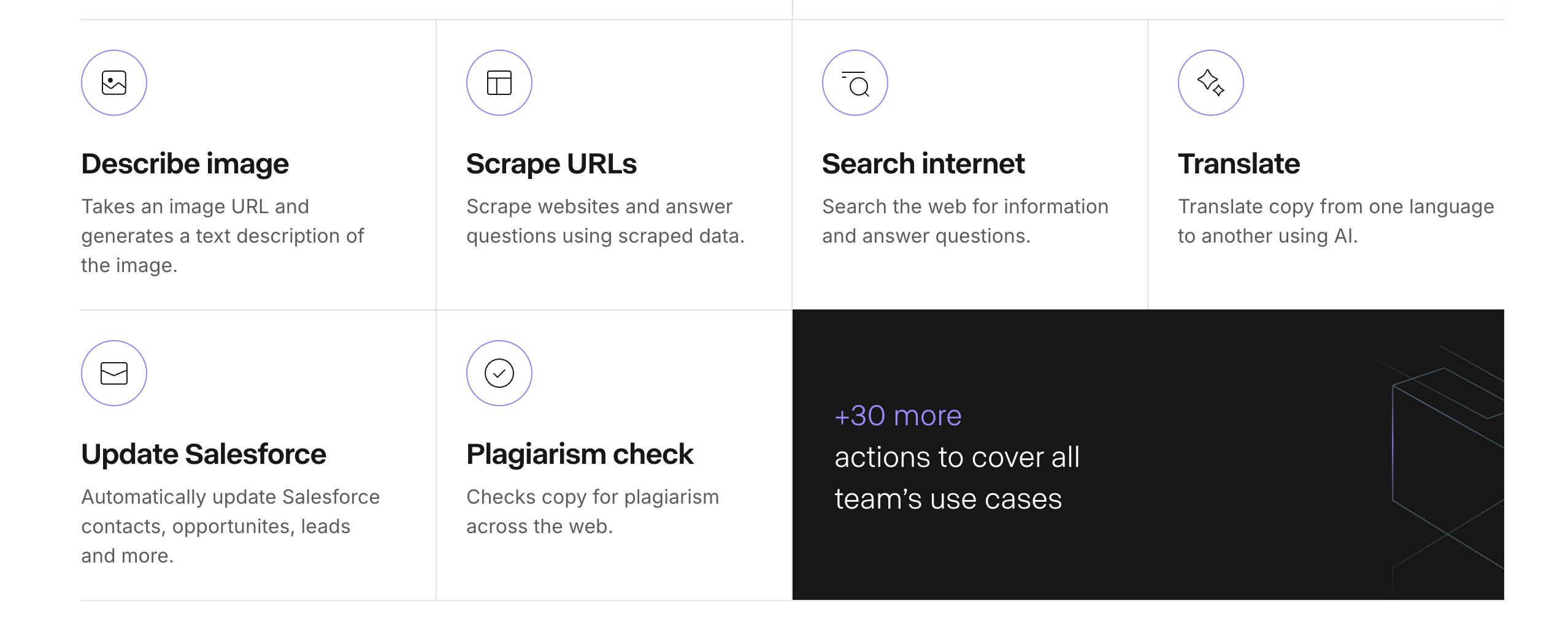 While Copy.ai offers a range of predefined actions, the development of custom actions is underway as of February 2025, which will allow users to create personalized automation workflows tailored to their unique needs.