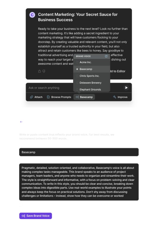 The brand voice feature enables companies to maintain consistent, on-brand content creation across platforms.