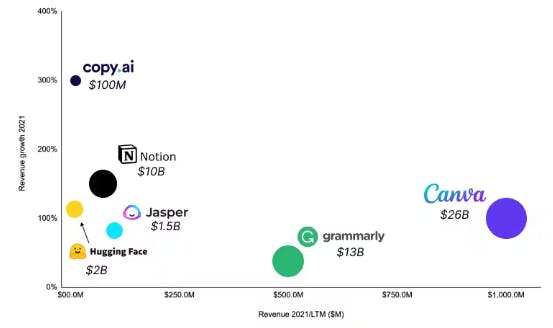 Copyrytr: Founded in 2020, CopySmith uses AI to help marketers create copy. Copysmith raised $10 million in 2021 to grow its business which was then focused on templates for specific ad copy. Like Copy.ai, CopySmith uses external LLMs but also uses some in-house language models. Its templates were specific to popular platforms like Google ads, Facebook ads, or YouTube video descriptions. Since then, Copysmith has expanded through acquisitions of Rytr and Frase, launching a collective of AI content and SEO marketing solutions called Copyrytr. Frase is a platform that helps individual marketers research, write, and optimize AI-generated SEO content. Copysmith, the company’s original product, has transformed into an AI content-creator tool for teams at enterprise-scale companies. Like Copy.ai, Copyrytr offers AI-powered content and marketing tools for both individuals and enterprises.