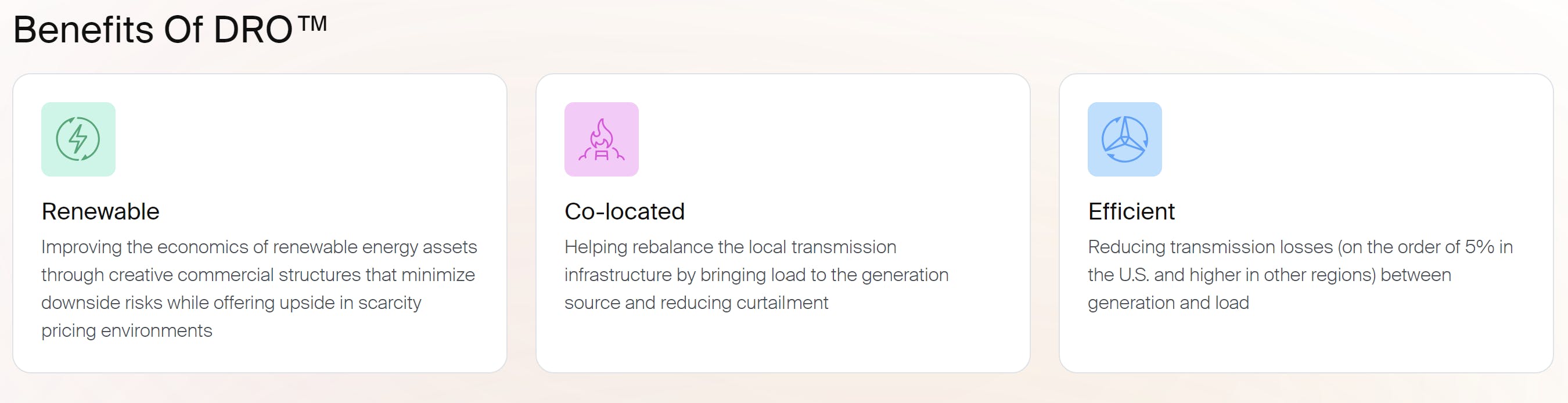 Additionally, Crusoe offers two patented energy products: Digital Flare Mitigation (DFM) and Digital Renewable Optimization (DRO).