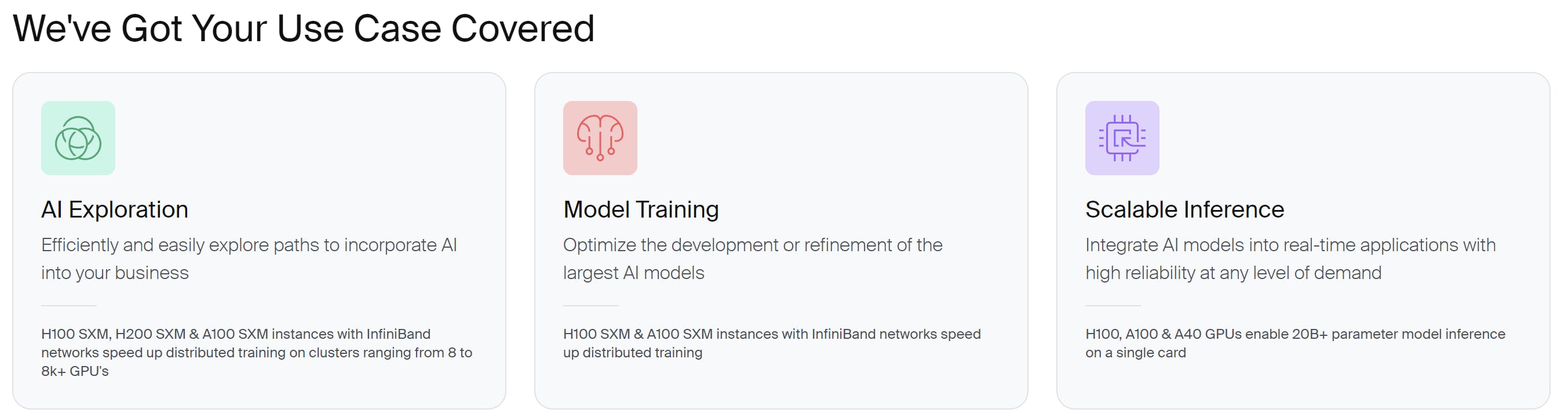 The primary use cases of Crusoe Cloud are AI Exploration, Model Training, and Scalable Inference. One example is the MIT High Energy Physics Research Group using Crusoe to develop machine learning algorithms to analyze data from particle colliders. Avalanche Energy, another client of Crusoe, uses Crusoe Cloud to simulate fusion microreactors.