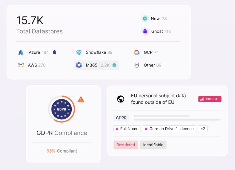 Cyera's tools also help organizations meet major privacy regulations, such as GDPR, HIPAA, and CCPA, by identifying and securing personal data. The solution flags data that crosses geographic boundaries, maintaining data sovereignty and preventing compliance violations. For example, a U.S. mortgage lender used Cyera's automated classification and risk management tools to manage its cloud data and achieve compliance with the Gramm-Leach-Bliley Act (GLBA).