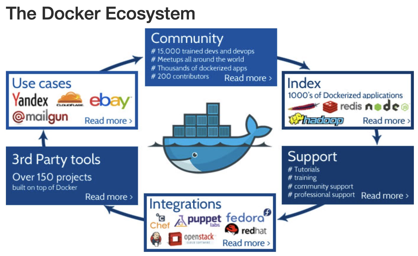 “Traditionally, teams of 1,000 developers would build monolithic applications tightly coupled to specific servers. You'd have long, slow release cycles of weeks or months in which developers can't update software quickly because any change can break the app. With Docker, you can assemble applications as if you're building something from Legos, where different pieces (called microservices) can be interchanged but are compatible with each other and work across thousands of servers. So a billing module can be a service, which is separate from a reporting module, which is separate from a sign-up module. You can reuse these modules for different applications. And Docker lets you put any app into the digital equivalent of a shipping container, which means you can move it to any server in the cloud or on-premise, any operating environment, and it will run consistently.”