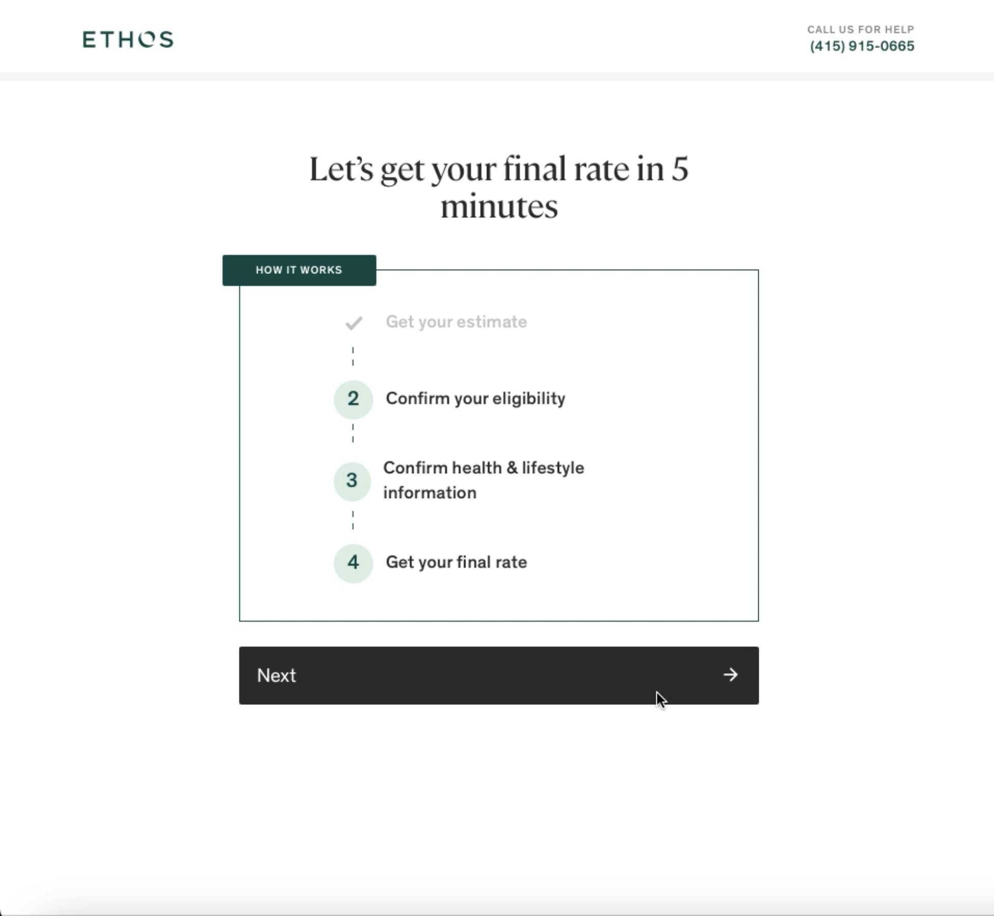 After completing the online application flow (which Ethos claims takes about five minutes), Ethos will process the application and provide the user eligibility status and rates. The processing time will vary based on the user’s application answers.