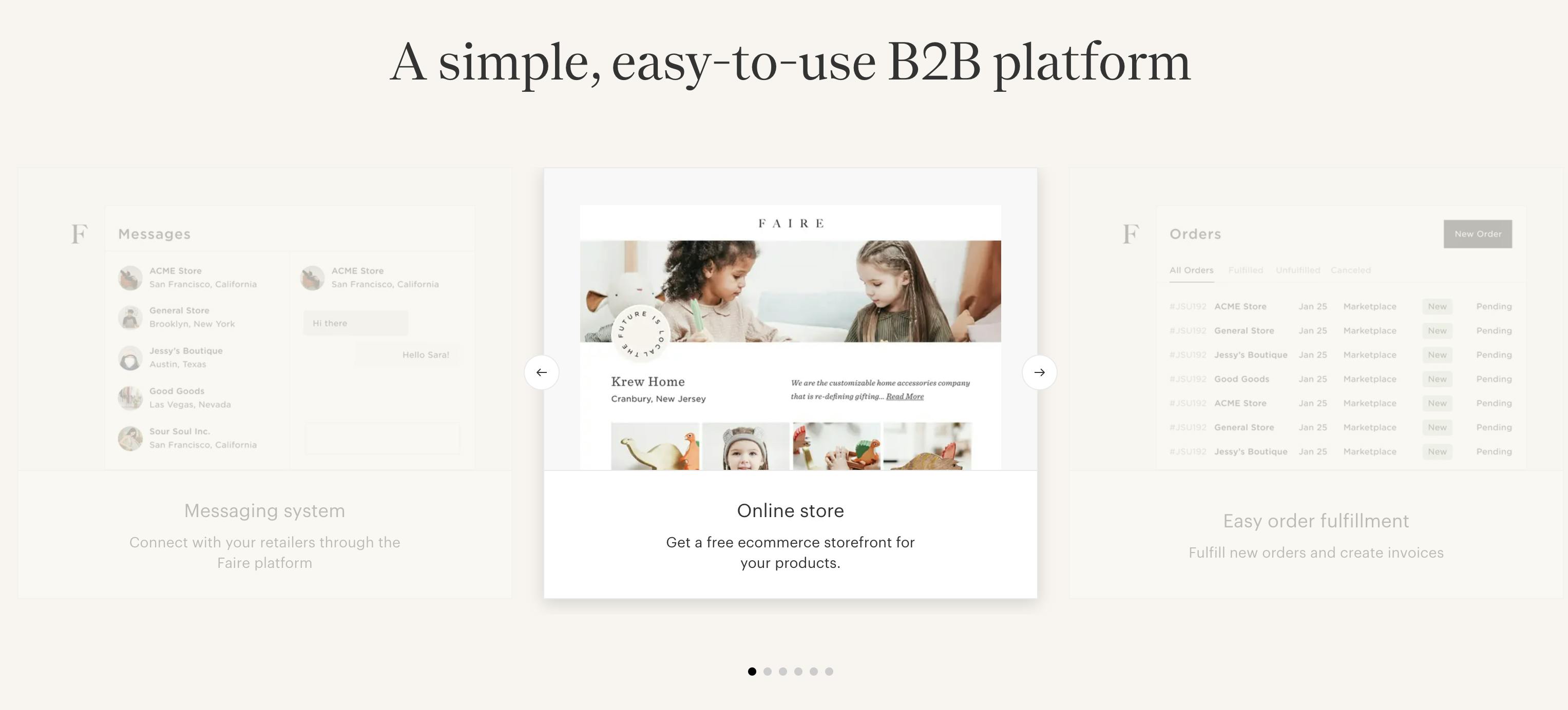 Faire is a B2B marketplace connecting independent retailers (i.e. “mom-and-pop shops”) and brands. It makes transacting easier by removing the risk for retailers of selling new products from small, unique brands and the complexity of in-person methods of wholesaling for brands, such as trade shows. Beyond its core marketplace offering, Faire also offers a suite of software tools and has two different product experiences for each side of the marketplace — one for retailers, and another for brands.