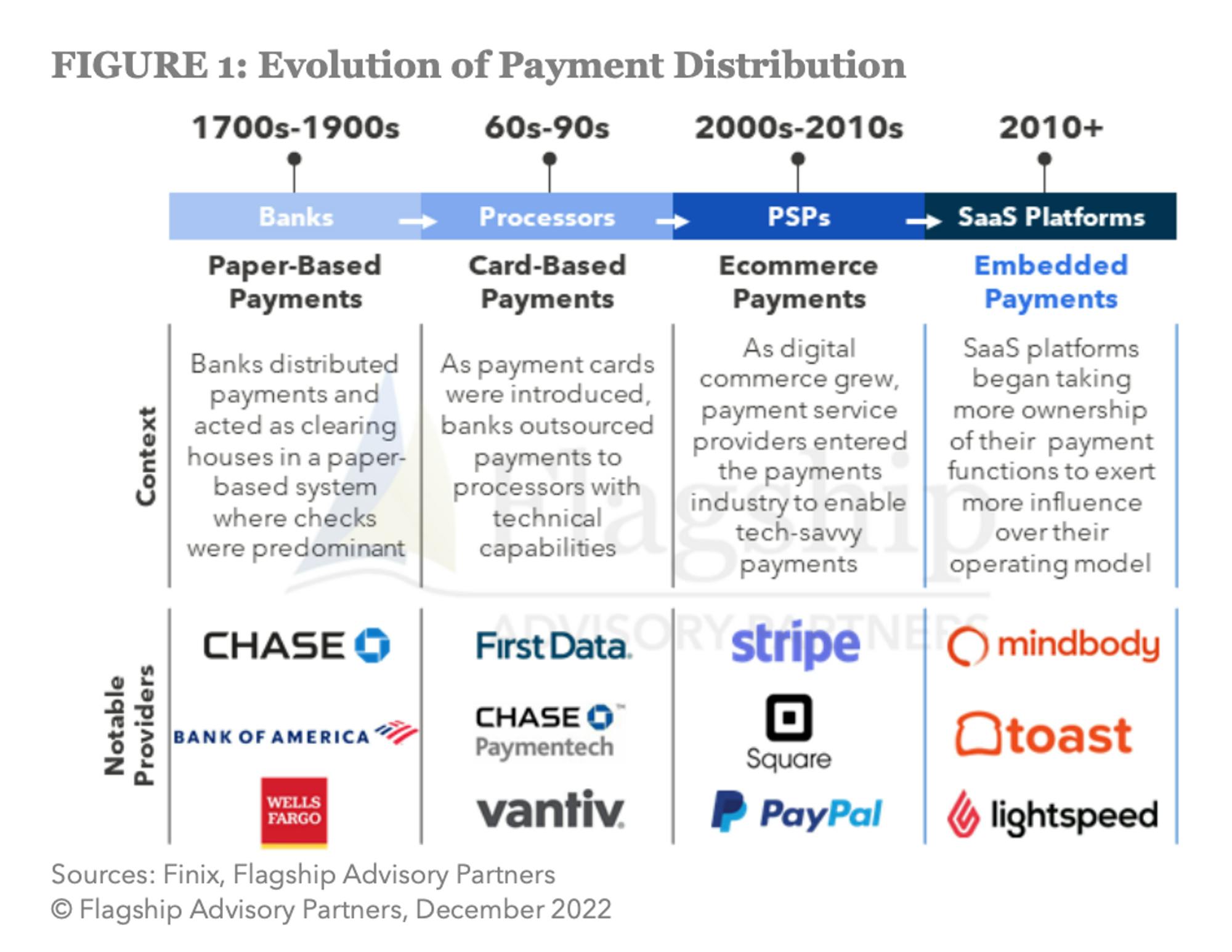 The transition from analog to digital and from banks to technology companies has created a tailwind for a large set of tech-enabled players. One of the most evident within these broad trends is the growth of integrated payments. Many software companies are leveraging their prominent and data-rich relationship with merchants to take over the payments acceptance function. As a result, software vendors are expected to represent $154 billion or 54% of North American payment revenue by 2027, and software companies are integrating payments into their core value proposition across sectors. By embedding payment capabilities into their core offerings and owning more of the transaction, they’re able to capture more value while also providing a more seamless experience to customers.
