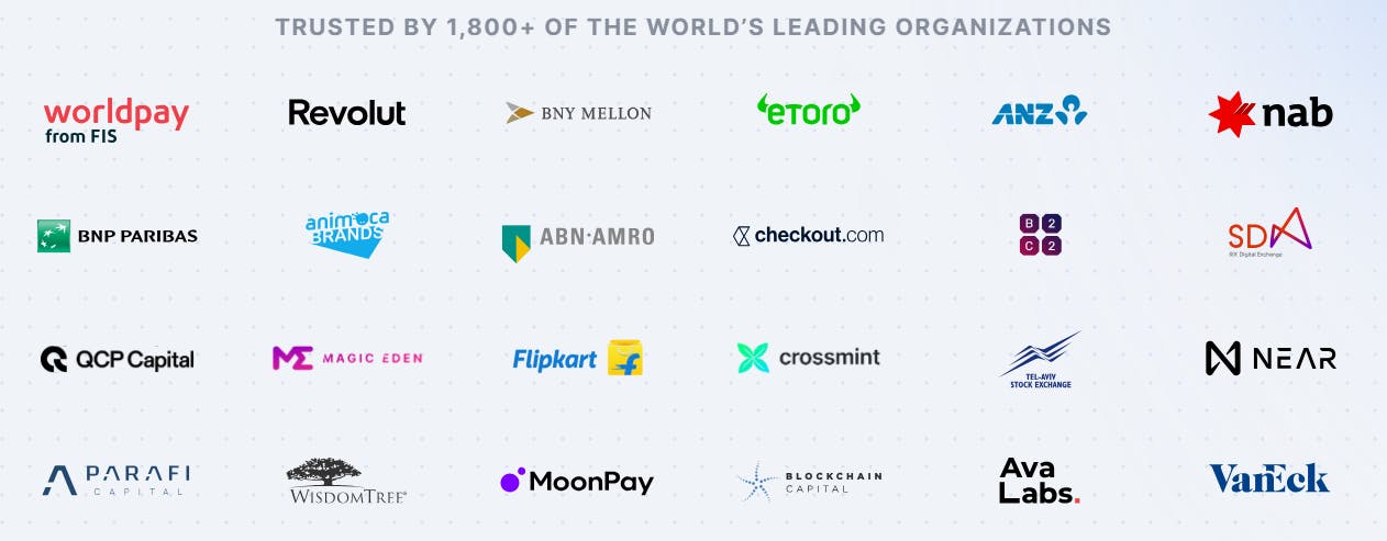 As of September 2023, Fireblocks reported having over 1.8K customers on its platform. Notable customers include Worldpay, Revolut, BNY Mellon, Checkout.com, and BNP Paribas. In total, Fireblocks reported that it has secured over $4 trillion in transactions and created over 130 million wallets for its customers since its founding as of September 2023.