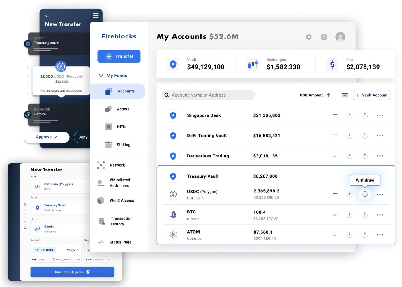Fireblocks Treasury Management solution is a solution that enables security for digital assets, day-to-day digital asset treasury operations, exchange connection, DeFI access, and interaction with trading counterparties. Fireblocks emphasizes security for the treasury management product suite, claiming that it “eliminates a single point of private key compromise.”