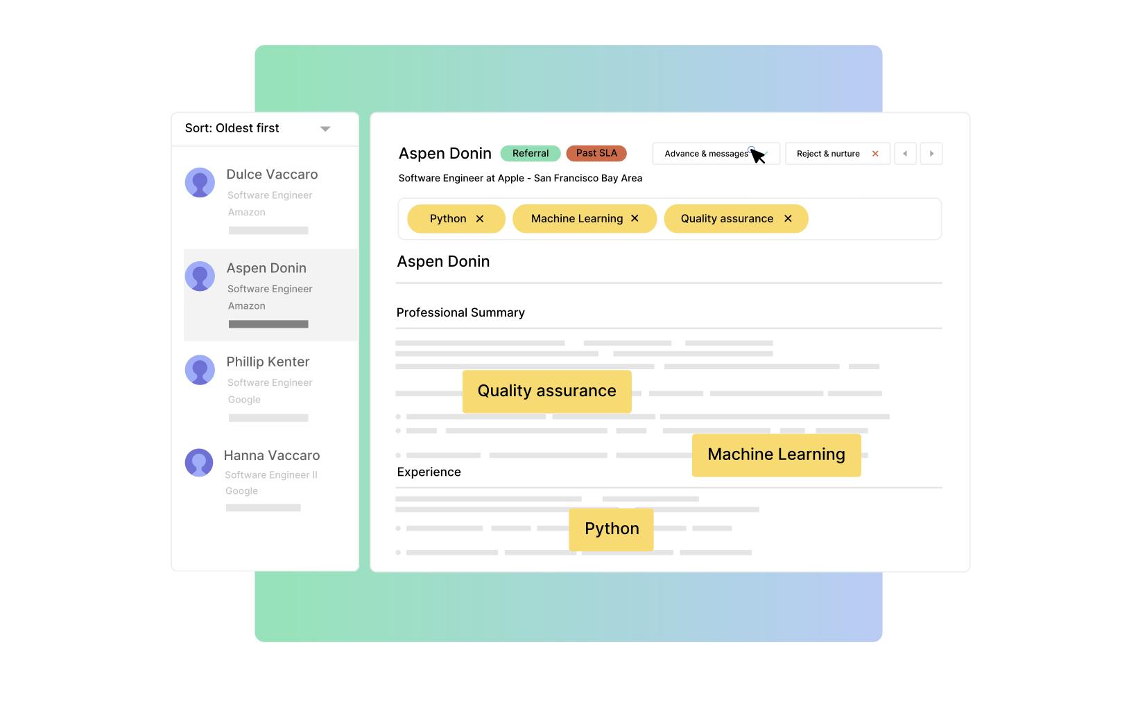 However, the proactive recruiting approach creates significant operational challenges. Individual recruiters shoulder multiple responsibilities, like aggregating vast amounts of candidate data from various sources like job networks, maintaining ongoing connections with each candidate throughout the hiring pipeline, and fulfilling the needs of hiring managers and teams. As such, a new market has emerged for recruiting software that automates the process of outreach, centralizes candidate data, and manages applicant tracking.
