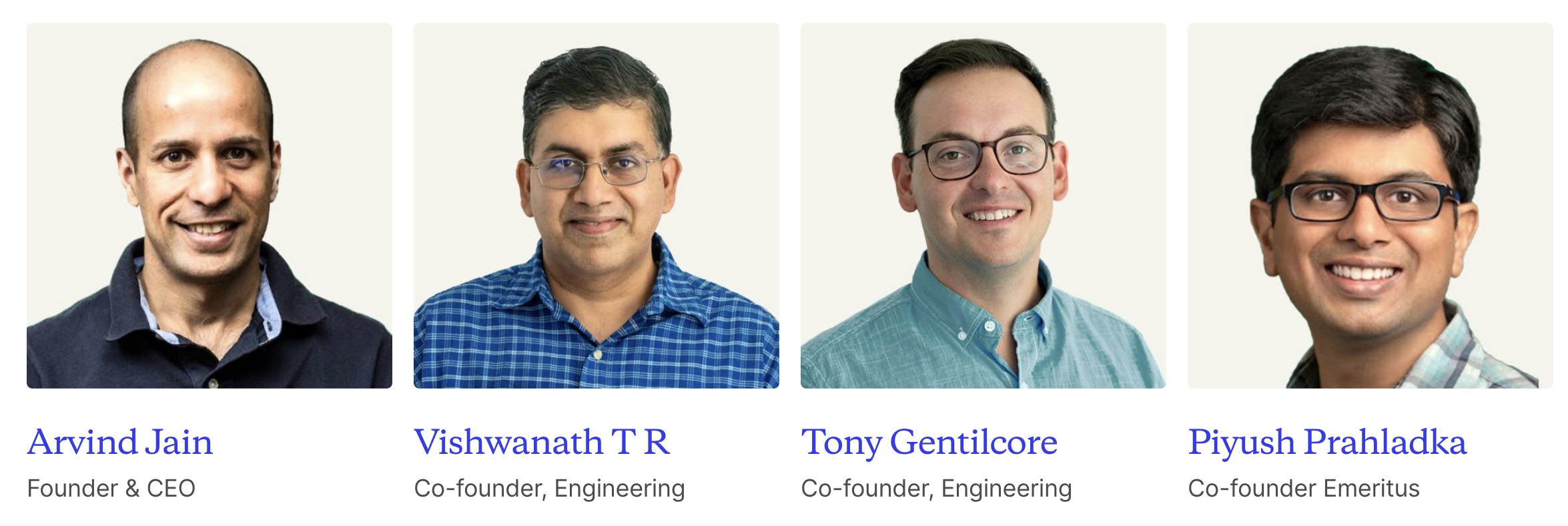 Glean was founded in 2019 by Arvind Jain (CEO), T.R. Vishwanath (Infrastructure Lead), Tony Gentilcore (Product Engineering Lead), and Piyush Prahladka (former Head of Search & AI).