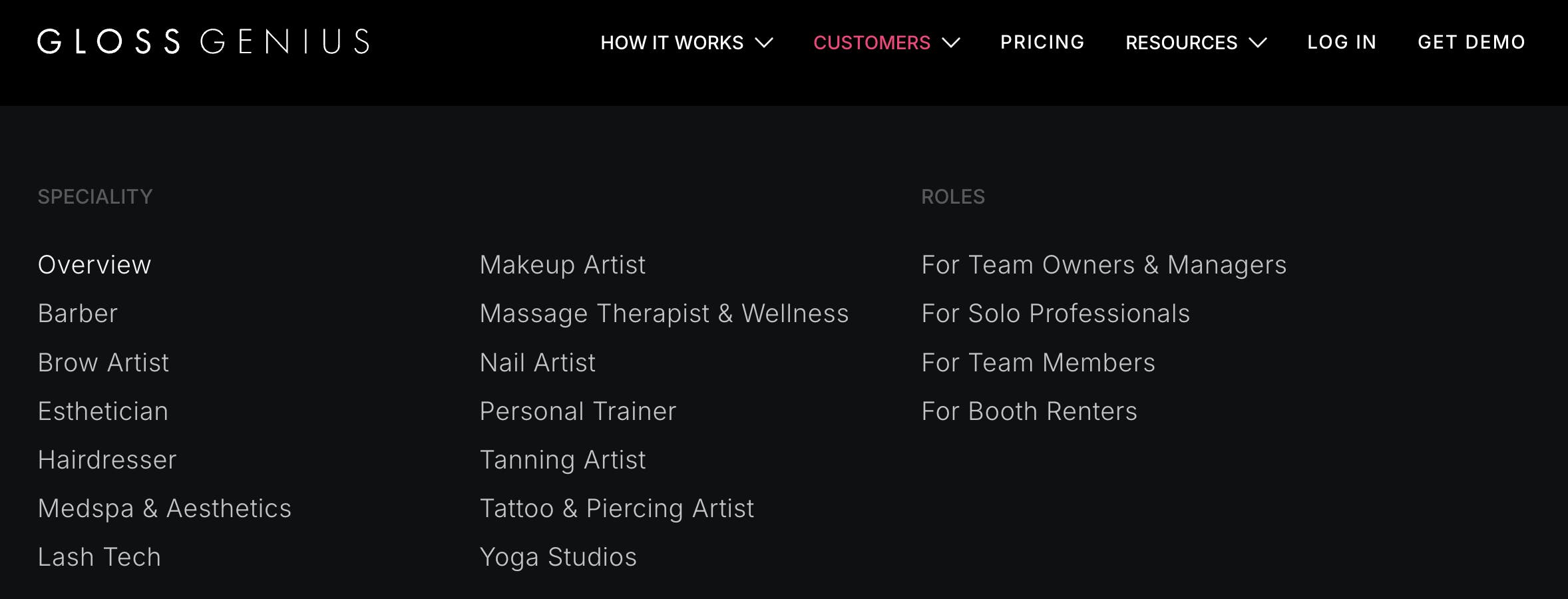 Since then, GlossGenius has expanded its target customer to the broader wellness and beauty industry, targeting small businesses in addition to independent professionals. Its “customers” page as of July 2025 included medspa professionals, tanning artists, personal trainers, and massage therapists.