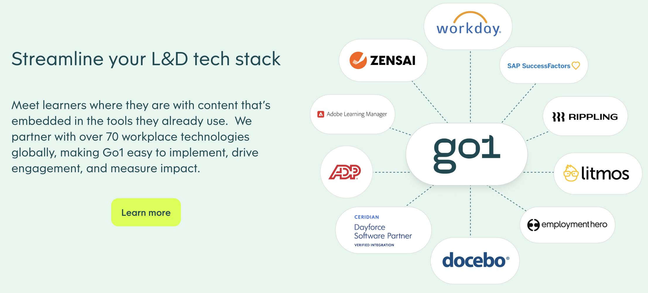 Go1’s integrations are focused on making its LMS as usable as possible within a company’s existing HR platforms.
