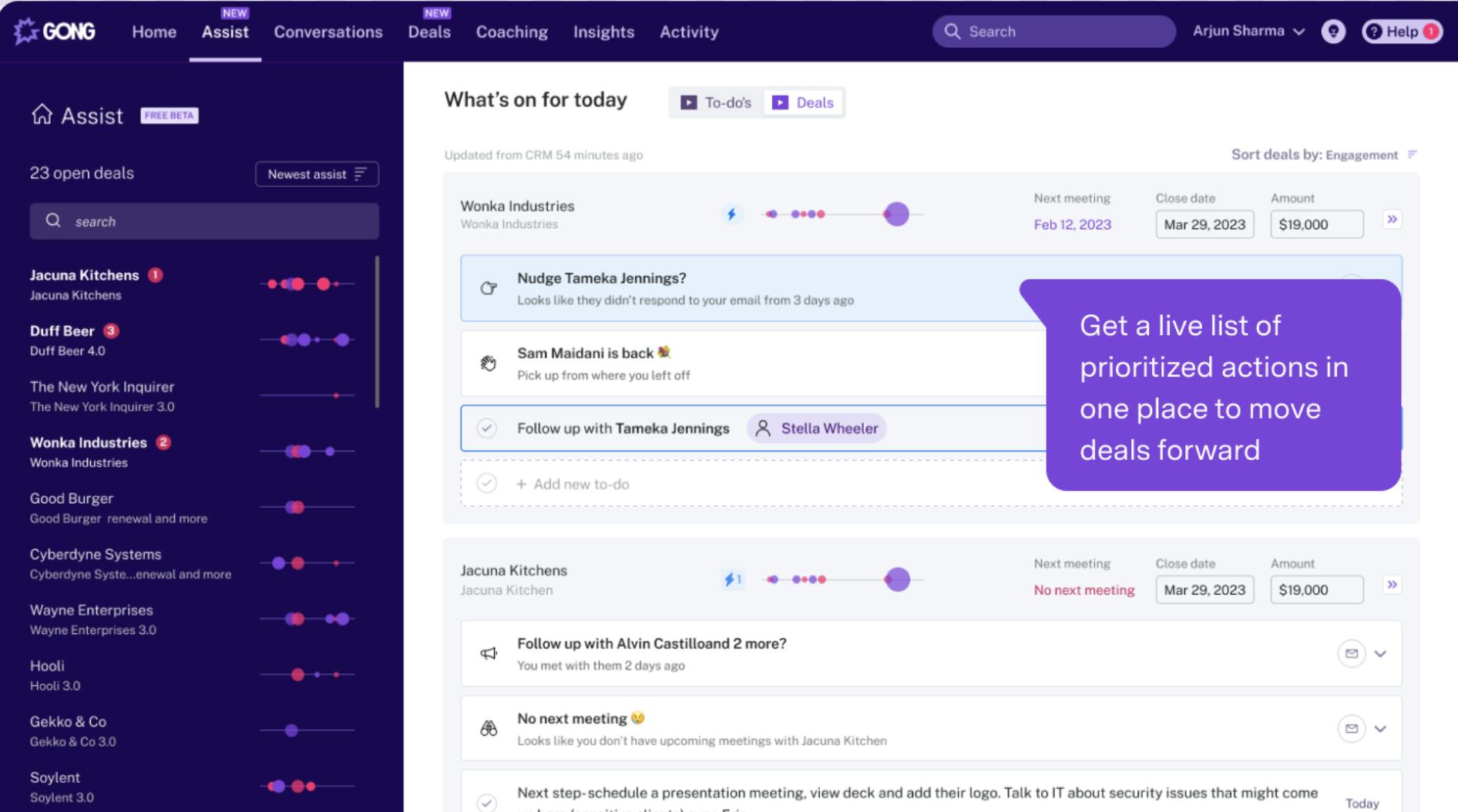 Launched in November 2022, Gong Assist is an AI-powered system that automates tasks, monitors opportunities, and recommends the next steps at the right time to help salespeople win more deals. It provides email templates based on topics discussed in prior interactions, the ability to update the CRM straight from Gong without needing to click out, and shareable workflows with teammates to ensure customer success and end-to-end visibility.