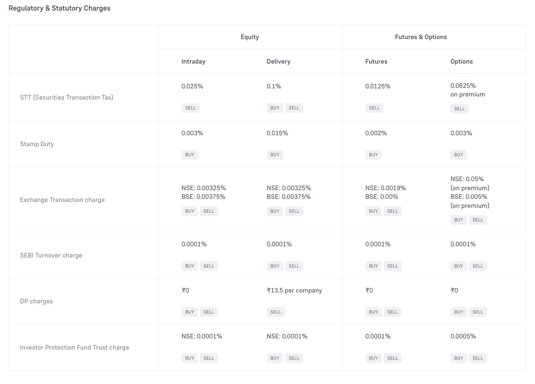 Depository Participant (DP) charge: Charges levied on sell orders, not applicable to intraday trading and F&O