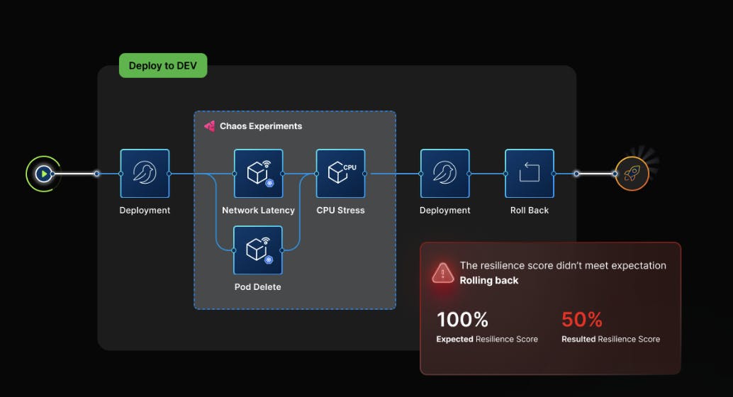 Native integration with Harness CD pipelines in tandem with Harness Continuous Verification (CV) helps facilitate hypothesis validation using probes; Harness aggregates chaos events, metrics, logs (audit and execution) to construct APM dashboards.