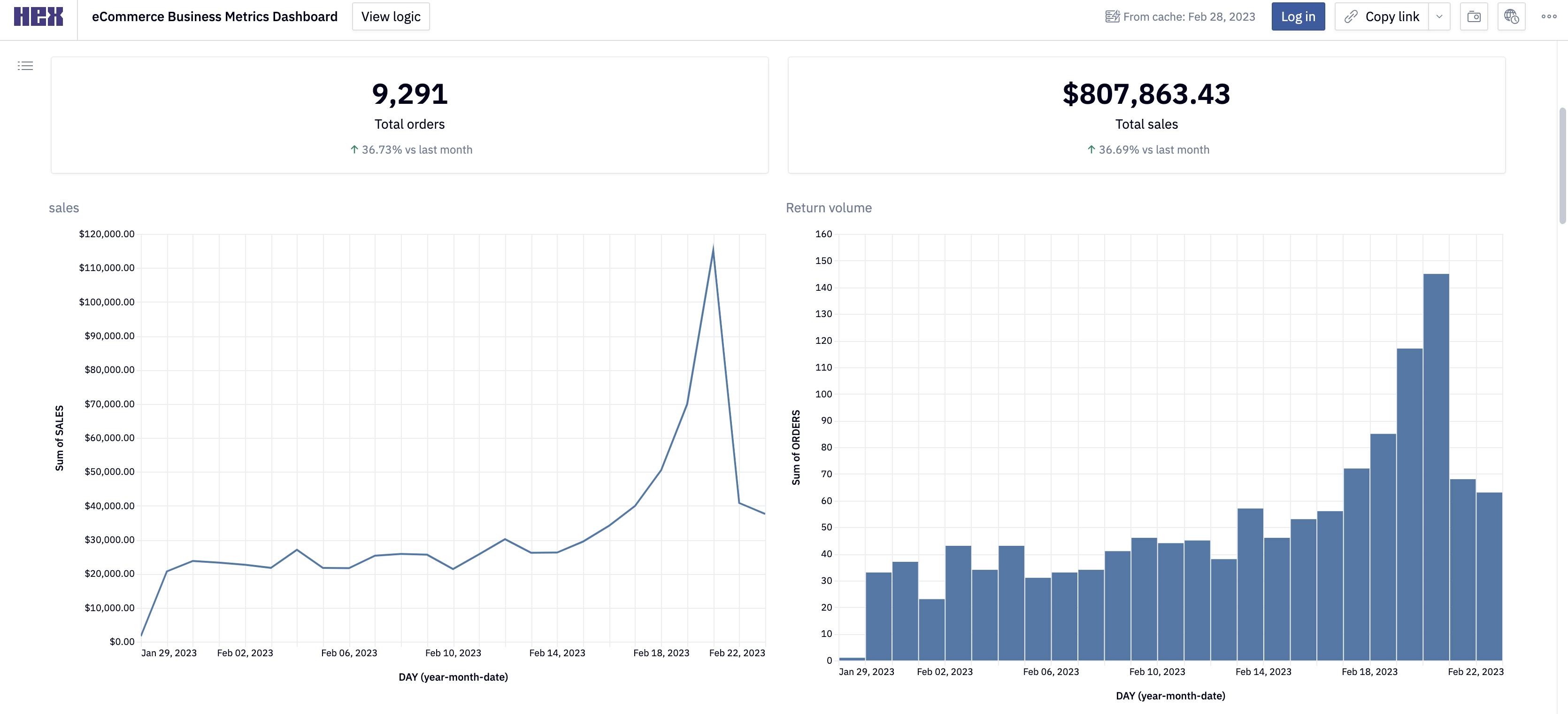 dbt Metrics: Query governed data from a querying interface built on top of the dbt metrics Layer. Define metrics in dbt, then query, pivot, and visualize in Hex.