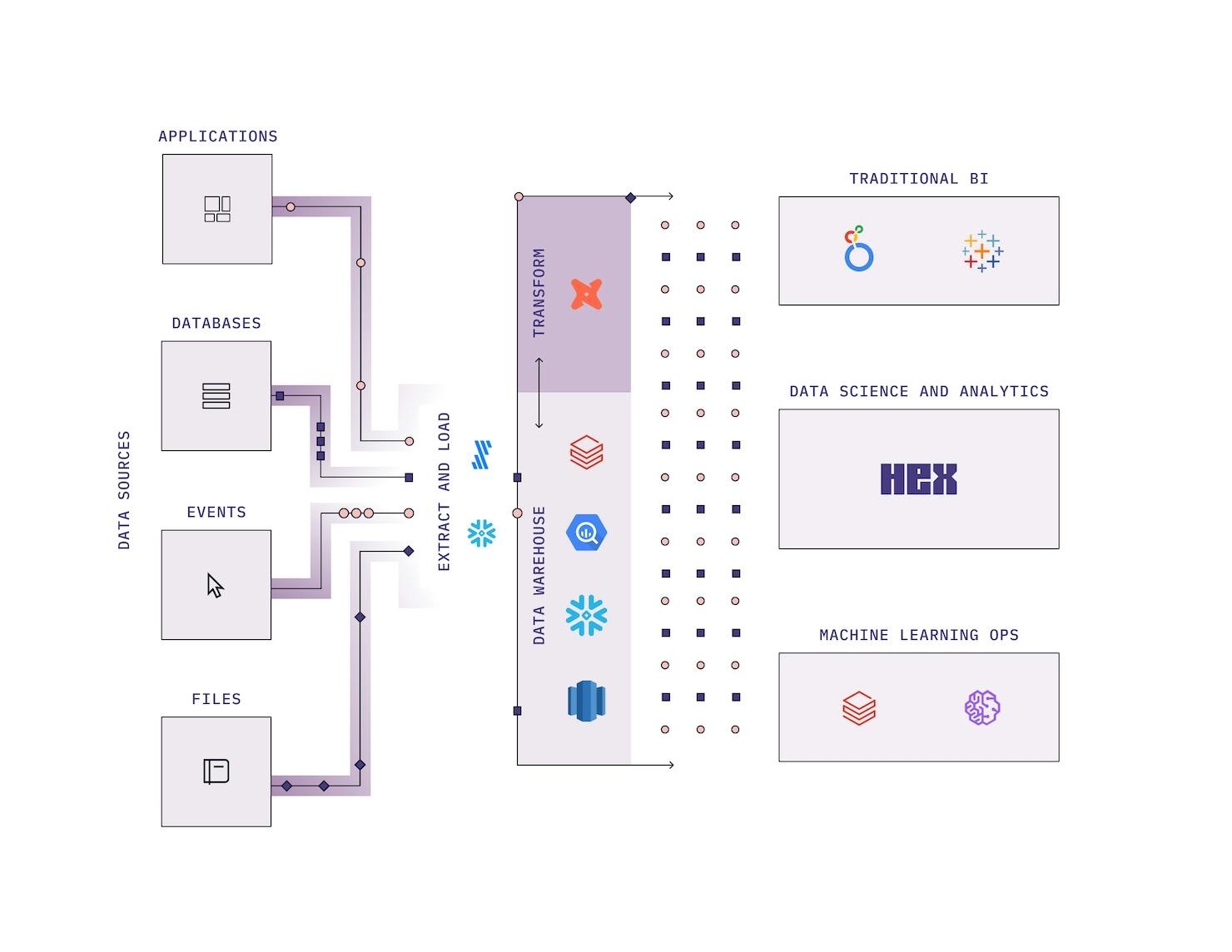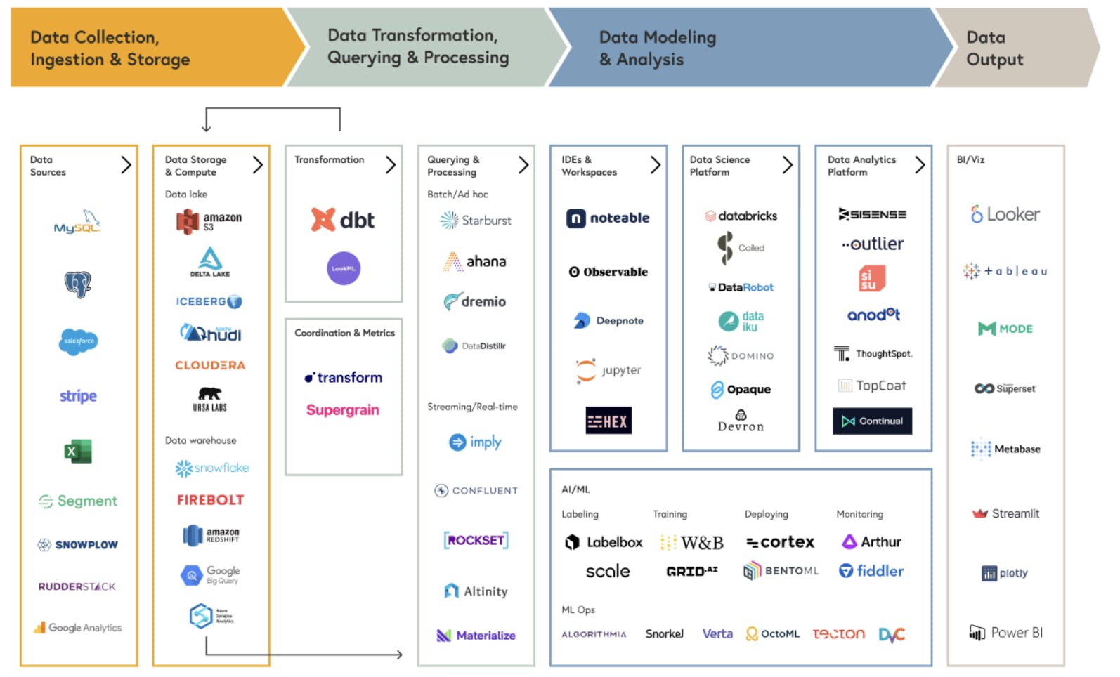 During that time, the team noticed a rapid increase in data volumes and tools for data transformation, model-building, and visualization. The rise of cloud data warehouses enabled companies to store data at scale and increase the volume of accessible data. Companies like Snowflake and Databricks made it easy to extract data into warehouses. dbt Labs and Fivetran enabled companies to transform that data into a usable state. The modern data stack was taking shape.