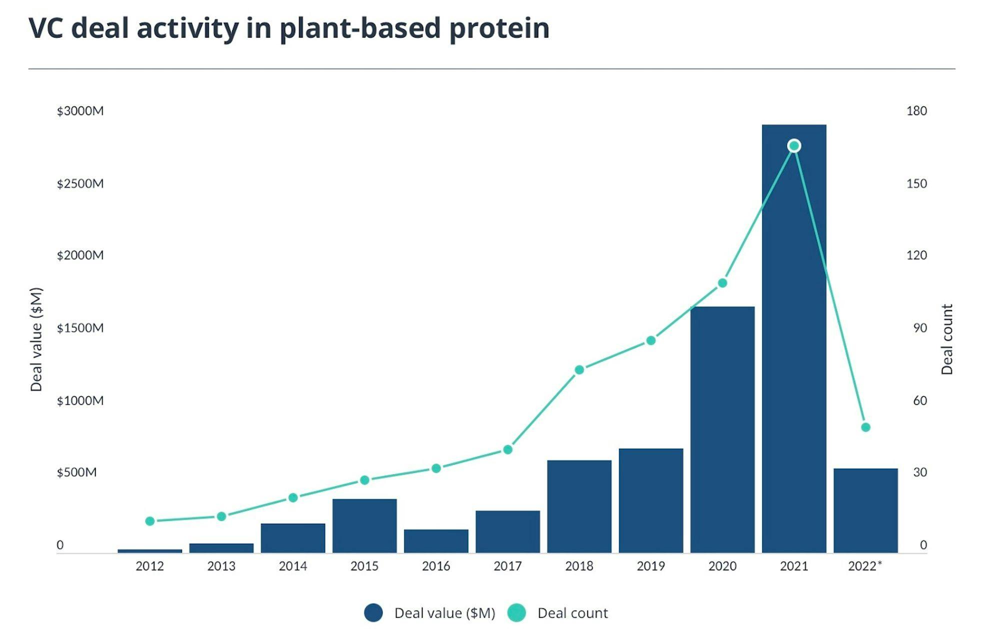 As a result, funding has flooded into the plant-based meat market in recent years, and it has become a $7.5 billion market as of 2021. When compared to the $280 billion global meat market, it’s clear there’s considerable room to grow. However, in the face of deteriorating macroeconomic conditions, the faux meat market cooled down significantly starting in 2021, and saw a decrease in sales for 22 consecutive months leading up to November 2022.