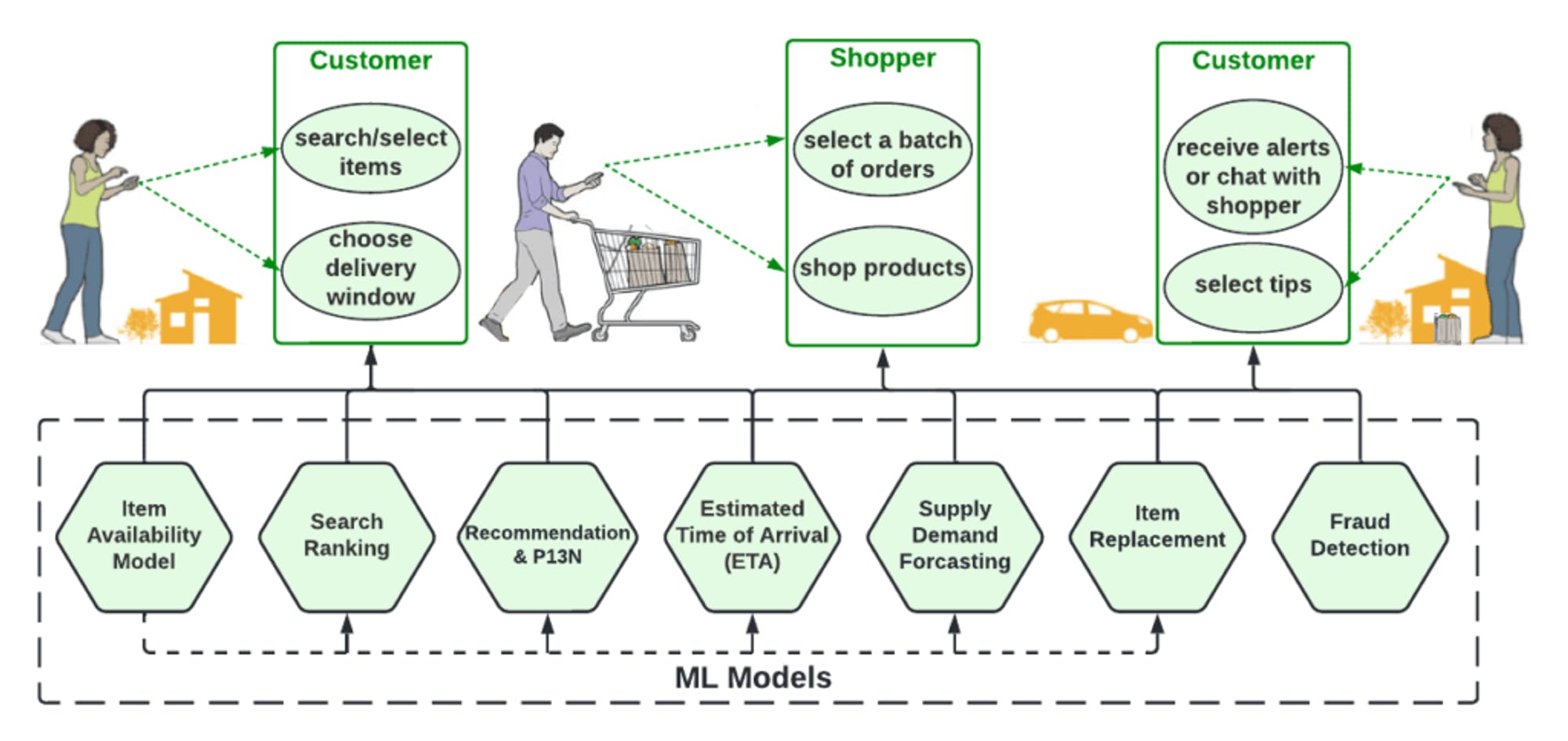 Instacart aims to provide a convenient shopping experience to its users and shows users a running total of the hours they have theoretically saved on shopping by using Instacart. It can predict the likelihood of an item being in stock by the time the shopper arrives to purchase it and saves customer preferences to identify backup products if the desired product is out of stock. The app also personalizes recommendations based on a user's shopping history, location, and purchase patterns and predicts delivery times. To minimize wait times for consumers, it picks the best driver for the job to deliver grocery orders as quickly as possible.