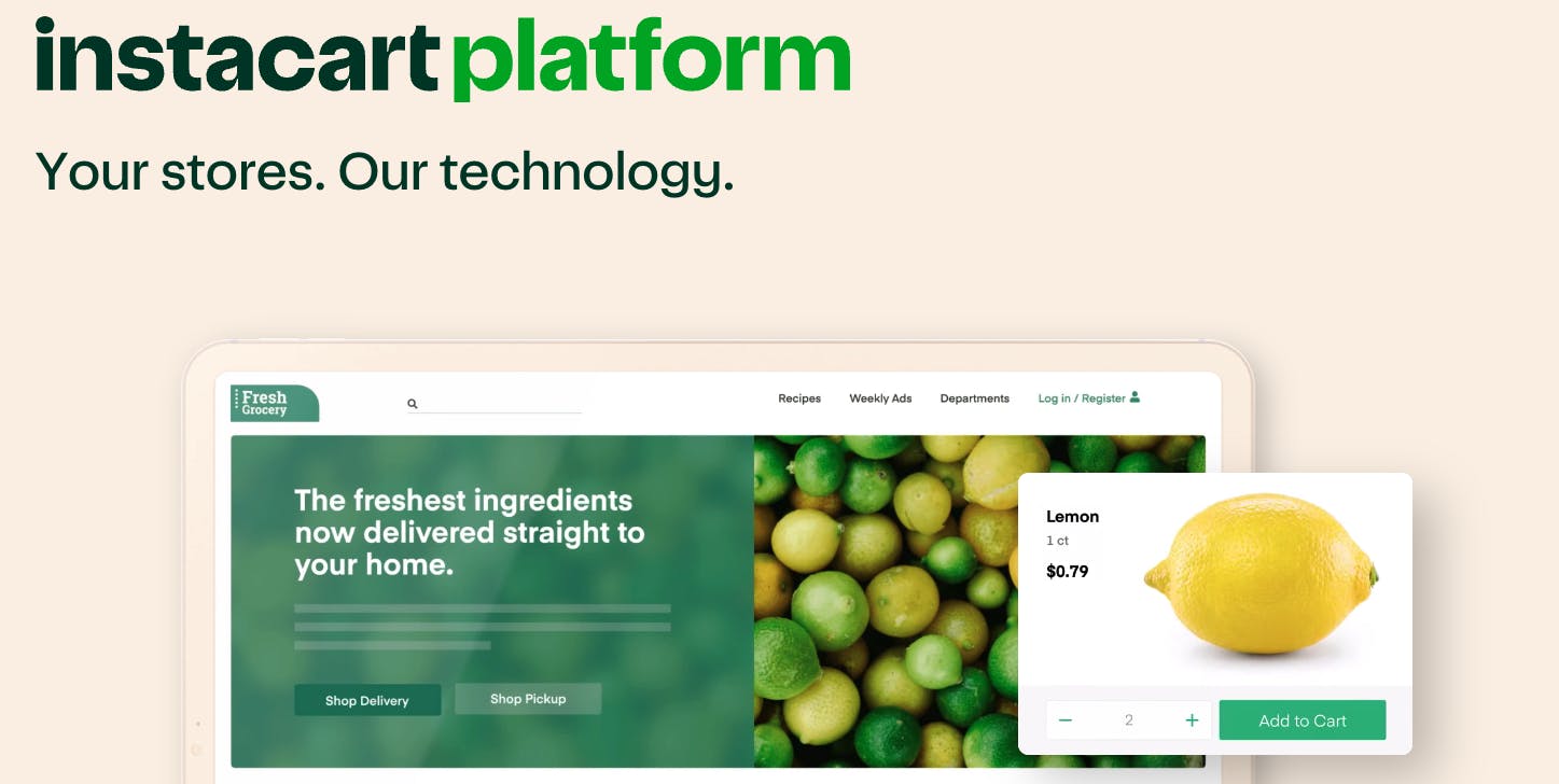 Ecommerce: Instacart powers ecommerce storefronts for retailers like Sprouts and Publix, while also providing product discovering tools, merchandising, payment models, and loyalty-as-a-service.