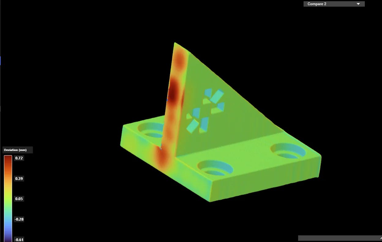 A scan-to-scan comparison is effectively the same thing as the CAD comparison but between two scans from a CT scanner. The scan-to-scan comparison is meant to be a deviation check between two products in manufacturing. This feature provides an understanding of whether manufacturing equipment is facing wear and tear and how it may impact the product. These capabilities turn complex analyses into a straightforward check, shortening iteration cycles, and maintaining product quality across a line.