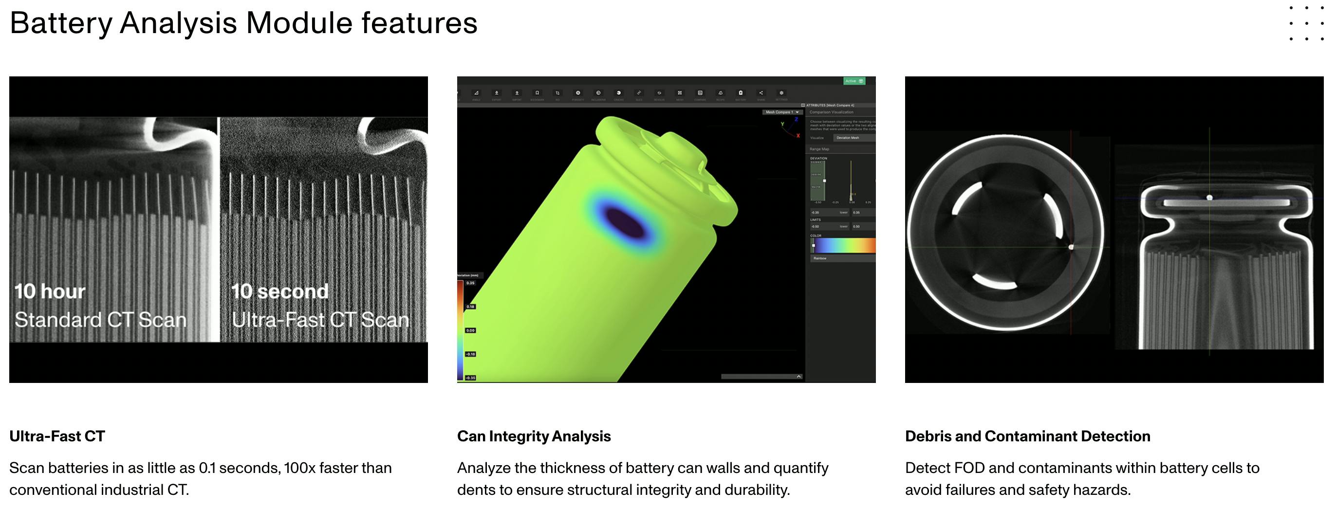 In September 2024, Lumafield launched a battery analysis module in Voyager designed specifically for battery manufacturers. It simplifies and automates the inspection of battery cells, covering cylindrical, pouch, and prismatic formats, as well as different chemistries. With Ultra-Fast CT, the system can perform a scan in 0.1 seconds.