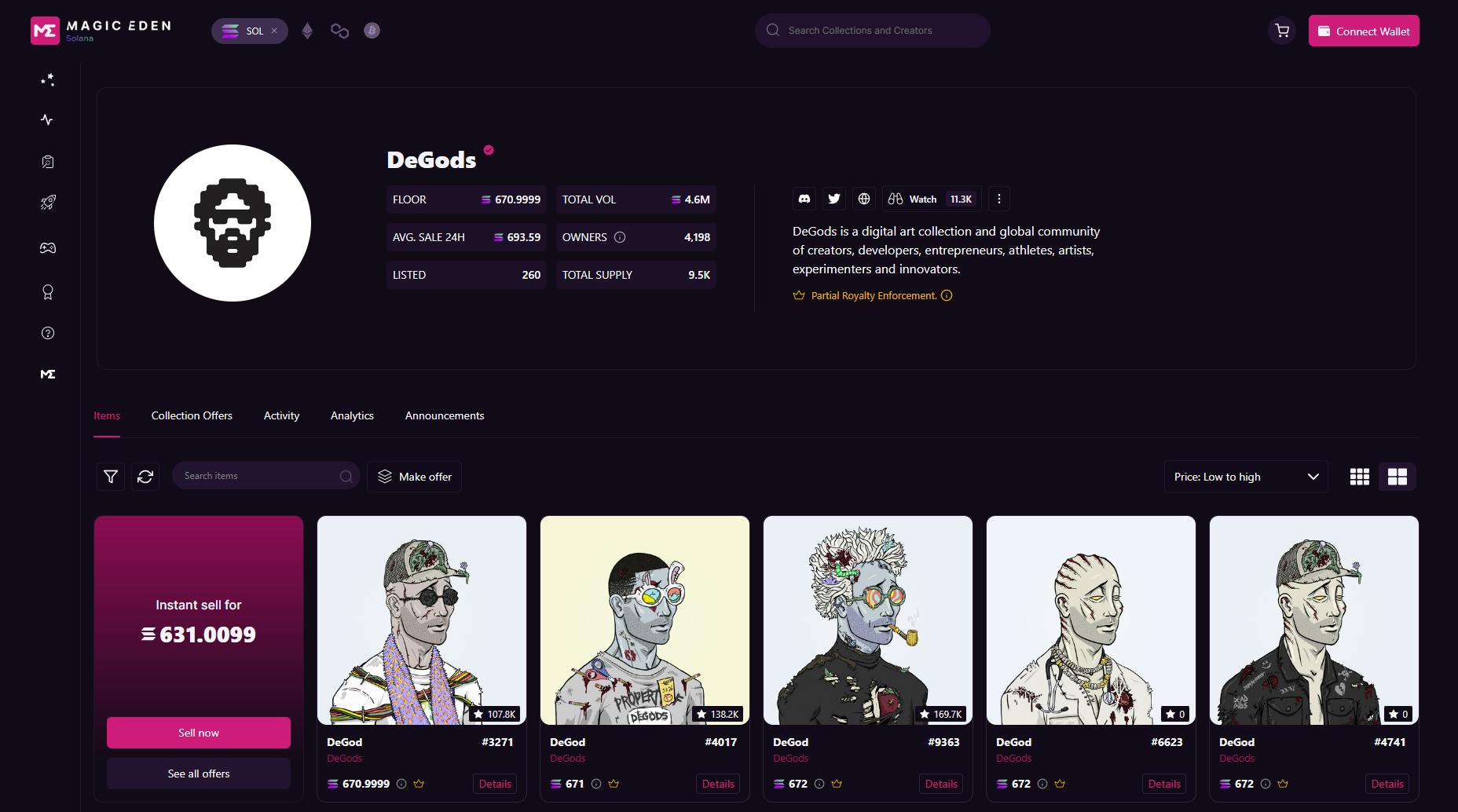 Automatic distribution: Magic Eden distributes the collection on the marketplace for a project launch without delays or issues. Creators enjoy a 0% listing fee. All users are charged a 2% transaction fee.