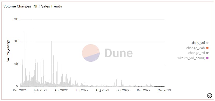 The crypto downturn has in the shorter term led to a significant contraction of Magic Eden’s market size. Magic Eden generates revenue from the transaction volume of NFTs and digital collectibles in its marketplace. Transaction volume across the whole sector is volatile, typically increasing significantly during crypto bull markets and collapsing during bear markets. As an example, NFT daily trading volume fell from a peak of $17 billion in January 2022 to $500 million in September 2022.