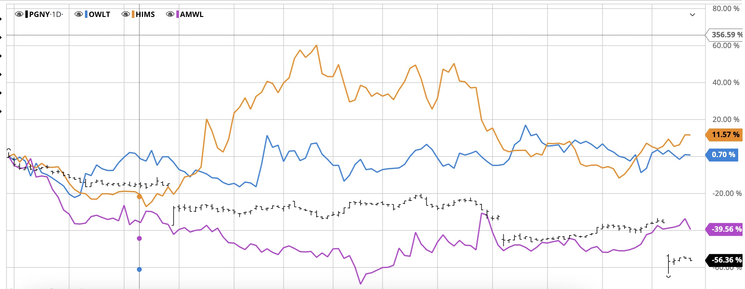 Maven Clinic competes with a range of publicly traded companies in the telehealth and maternity care space. Public competitors include Progyny (NASDAQ: PGNY), a fertility and family-building benefits management company serving employers and individuals, and Owlet (NYSE: OWLT), which specializes in connected health monitoring for infants. Other competitors include Hims & Hers Health (NYSE: HIMS), which offers reproductive and sexual health prescriptions and services, and Amwell (NYSE: AMWL), a leading telehealth platform. While Hims & Hers has seen an 11.5% stock growth from May to November 2024, both Progyny and Amwell have experienced declines.