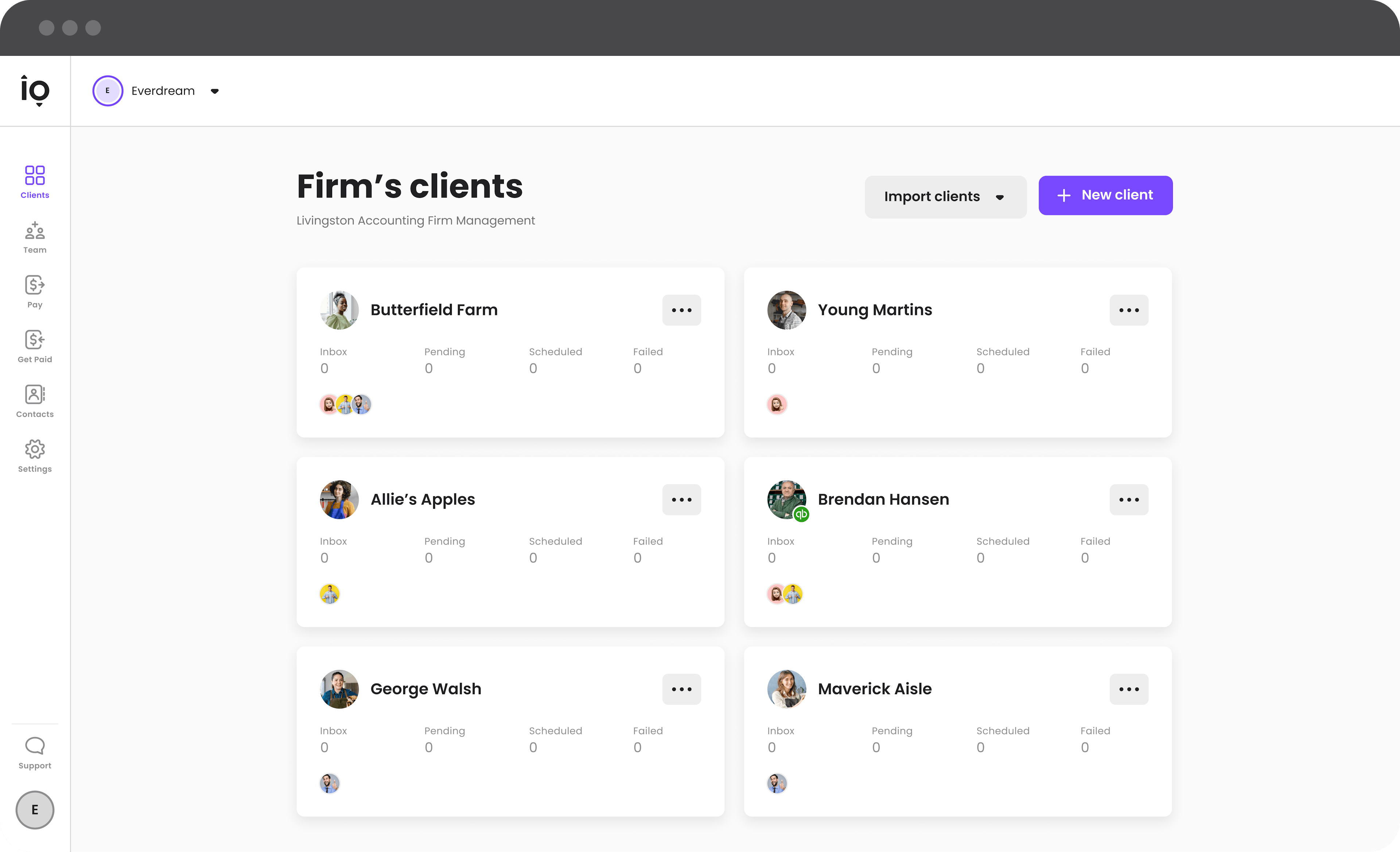 Melio provides a payment solution specifically designed for accountants managing multiple clients. The platform includes a team management tool that allows accountants to oversee client business payments and set up approval workflows tailored to their needs. Similar to Melio’s general "pay" and "get paid" offerings, this tool is optimized for accountants who require access to multiple businesses simultaneously. By integrating clients’ QuickBooks Online or Xero accounts, Melio eliminates the need for dual data entry, offering an automatic two-way sync for all bills and payments.