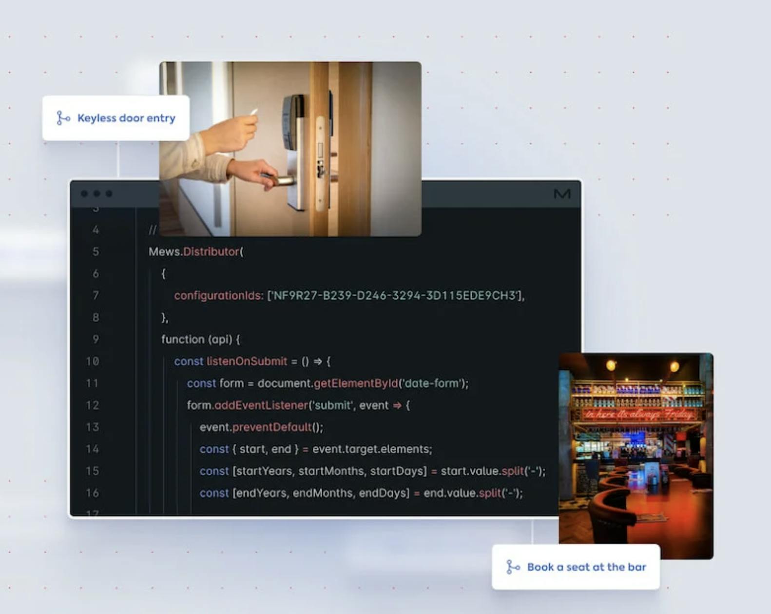The Mews API connects Mews to in-house tooling or third-party applications not on Mews’s marketplace. It facilitates communication between Mews and external applications or systems and connects with other services that work with property data, such as revenue management and POS systems. It can also be used with onsite solutions and local devices like printers and kiosks.