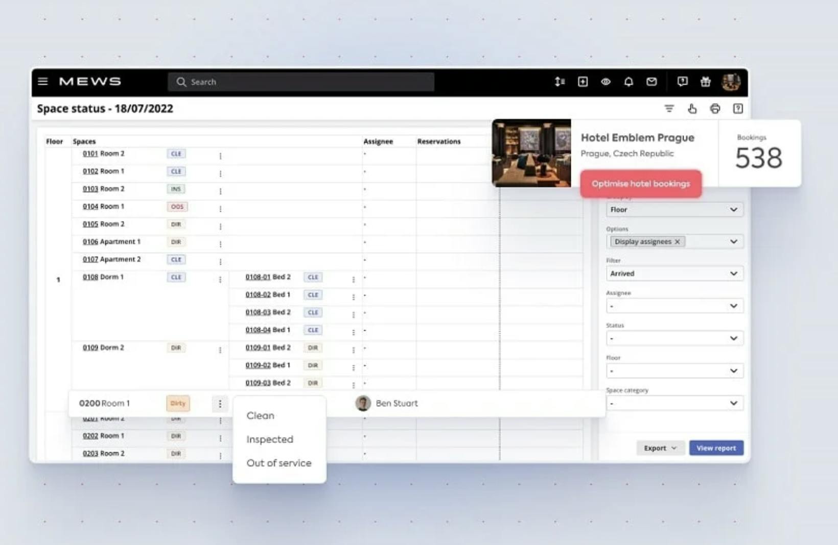 The Mews Operations PMS has five main modules: reservation management for individuals and groups, housekeeping (room cleaning), front-office management (check-ins, checkouts, ancillaries), rate management, and accounting.
