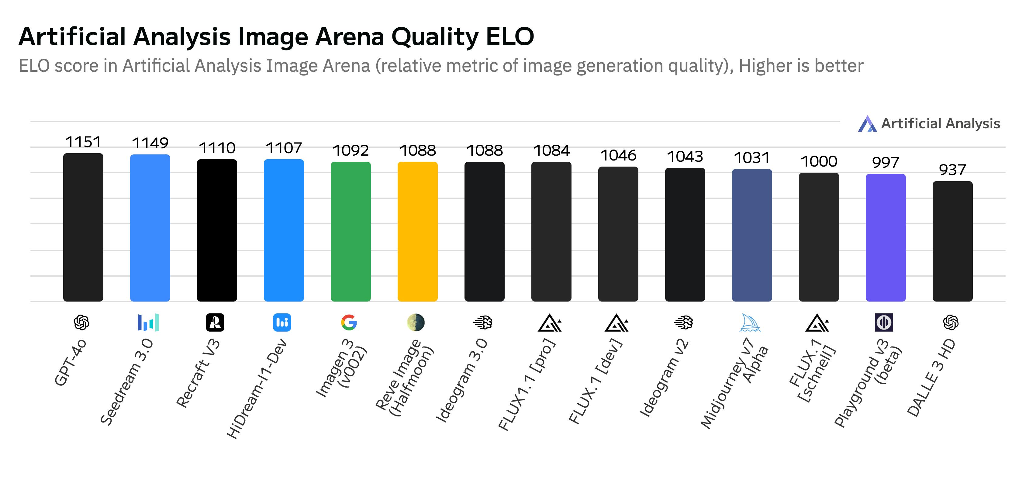 While DALL-E was its first major image model, the March 2025 update of GPT-4o introduced native image generation capabilities directly within the ChatGPT interface. It also became the top-ranked diffusion model on the Artificial Analysis leaderboard as of May 2025, surpassing both Midjourney in benchmark image quality and coherence. Compared to Midjourney, OpenAI offers broader accessibility and developer tooling. GPT-4o and DALL-E are available via ChatGPT and API, allowing for easy integration into external workflows. Midjourney maintains a lead in stylistic flexibility and artistic control, but OpenAI’s unified multimodal stack positions it as a comprehensive creative AI platform and a structurally advantaged competitor.