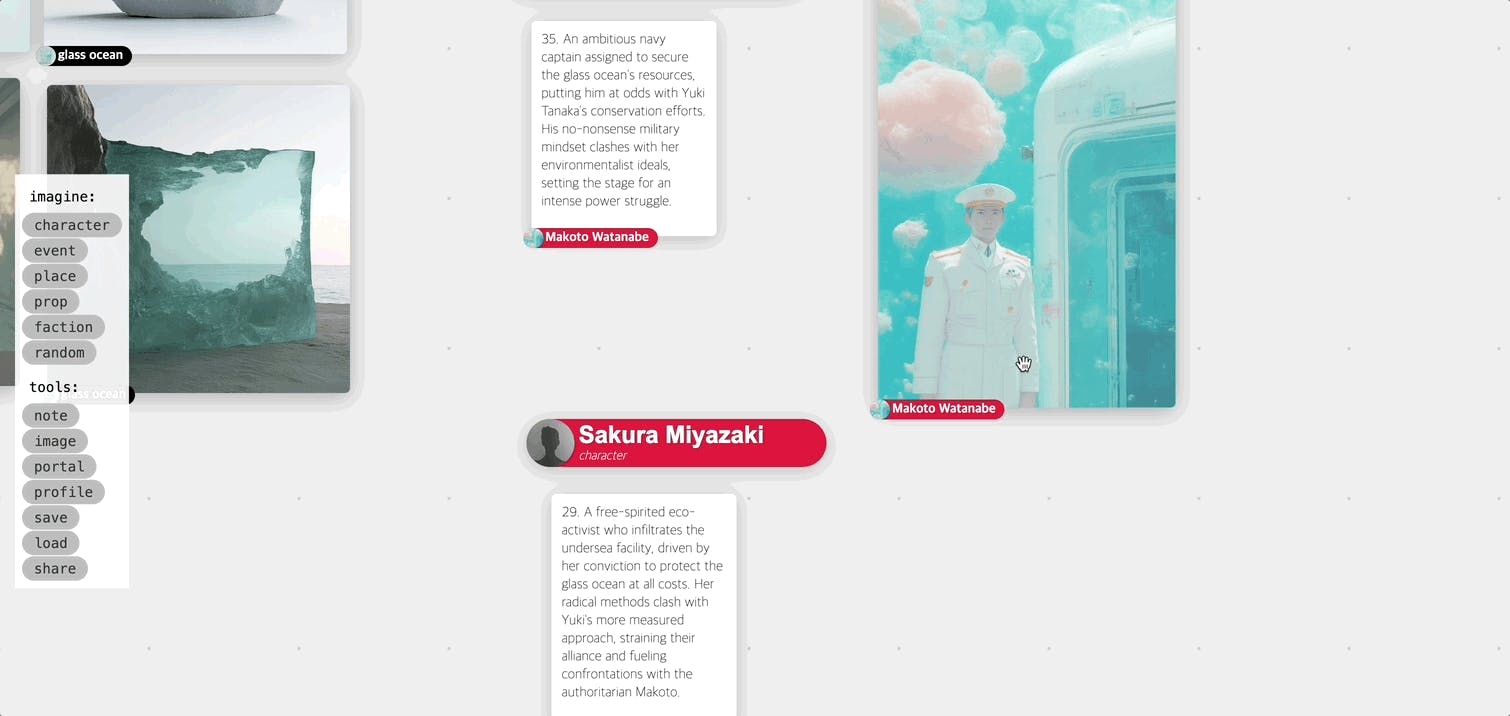 In December 2024, Midjourney launched Patchwork, a multiplayer worldbuilding tool set on an infinite canvas. Patchwork allows users to generate characters, describe scenes, and build connections between elements in a shared visual space. Up to 100 users can edit a single world simultaneously, with all imagery and text centrally stored within the workspace. Each character or asset can be visualized multiple times using Midjourney’s model, supporting iterative storytelling and collaborative design.