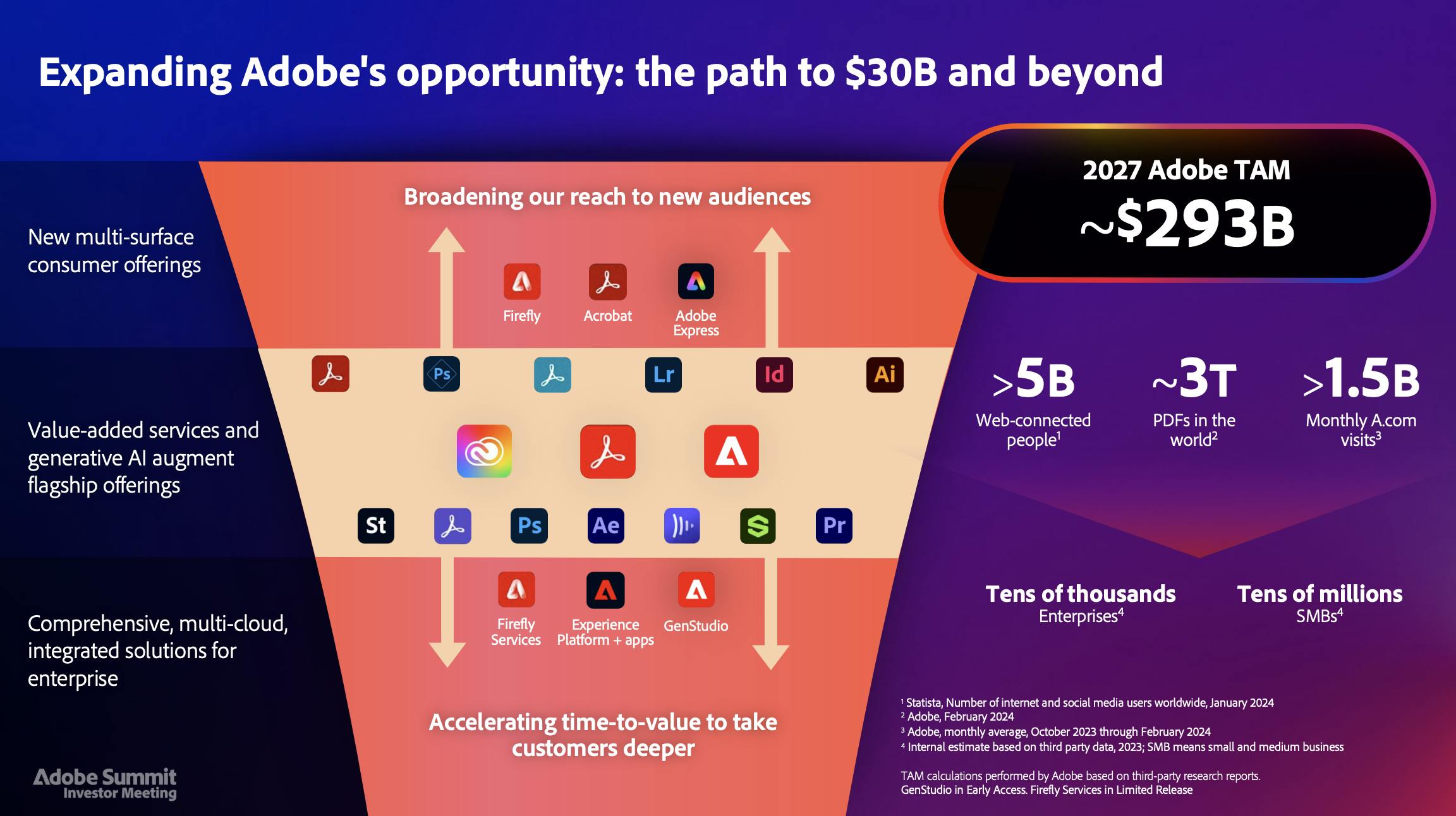 Midjourney’s total addressable market can be benchmarked against Adobe, the dominant player in creative software. Adobe estimated its TAM at $205 billion in 2024, projecting it to grow to $293 billion by 2027. This includes creative professionals, enterprises, and casual users across desktop, mobile, and web-based tools – an audience Midjourney increasingly serves through both its Discord interface and web platform. As Midjourney expands into editing, personalization, and collaboration features like Patchwork, its product surface is converging with Adobe’s Creative Cloud.