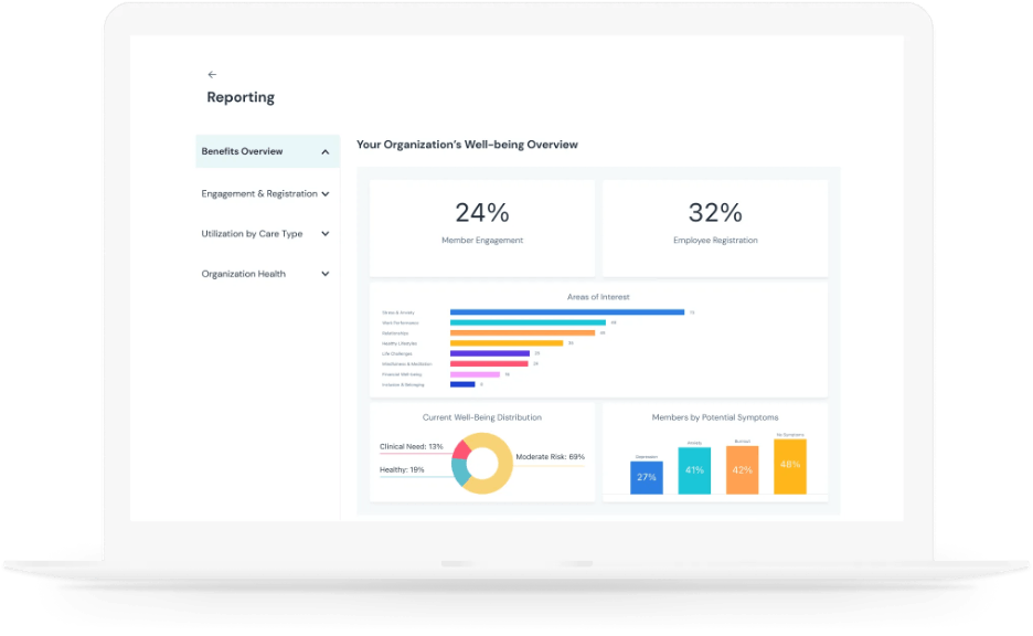 For employers, Modern Health’s Insights Hub also offers businesses a centralized portal to manage access to care, identify at-risk populations, and extend targeted support to their workforce. This includes on-demand reporting that displays key metrics on health and well-being, areas of need, and utilization of care across office locations and departments. In addition, it offers over 150 resources for managers, ERGs, and other leadership, as well as access to Client Success and Marketing partners who can help craft strategies for adoption.