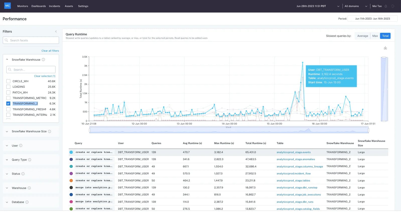 Data Performance Dashboard: In August 2023, Monte Carlo launched a Data Performance Dashboard, which helps to identify queries that are unnecessarily long and therefore result in higher costs from data warehouses, like Snowflake. This dashboard addresses the broader need for FinOps.